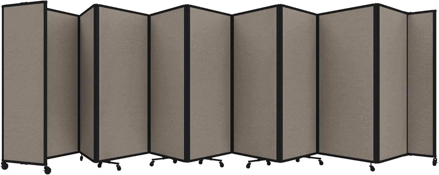 - THOUGHTFUL DESIGN: Made to roll around easily on wheels, this portable room separator also features locking casters to hold it in place. It comes with a trackable surface, sound-dampening fiberglass panels and a folding design for easy storage.