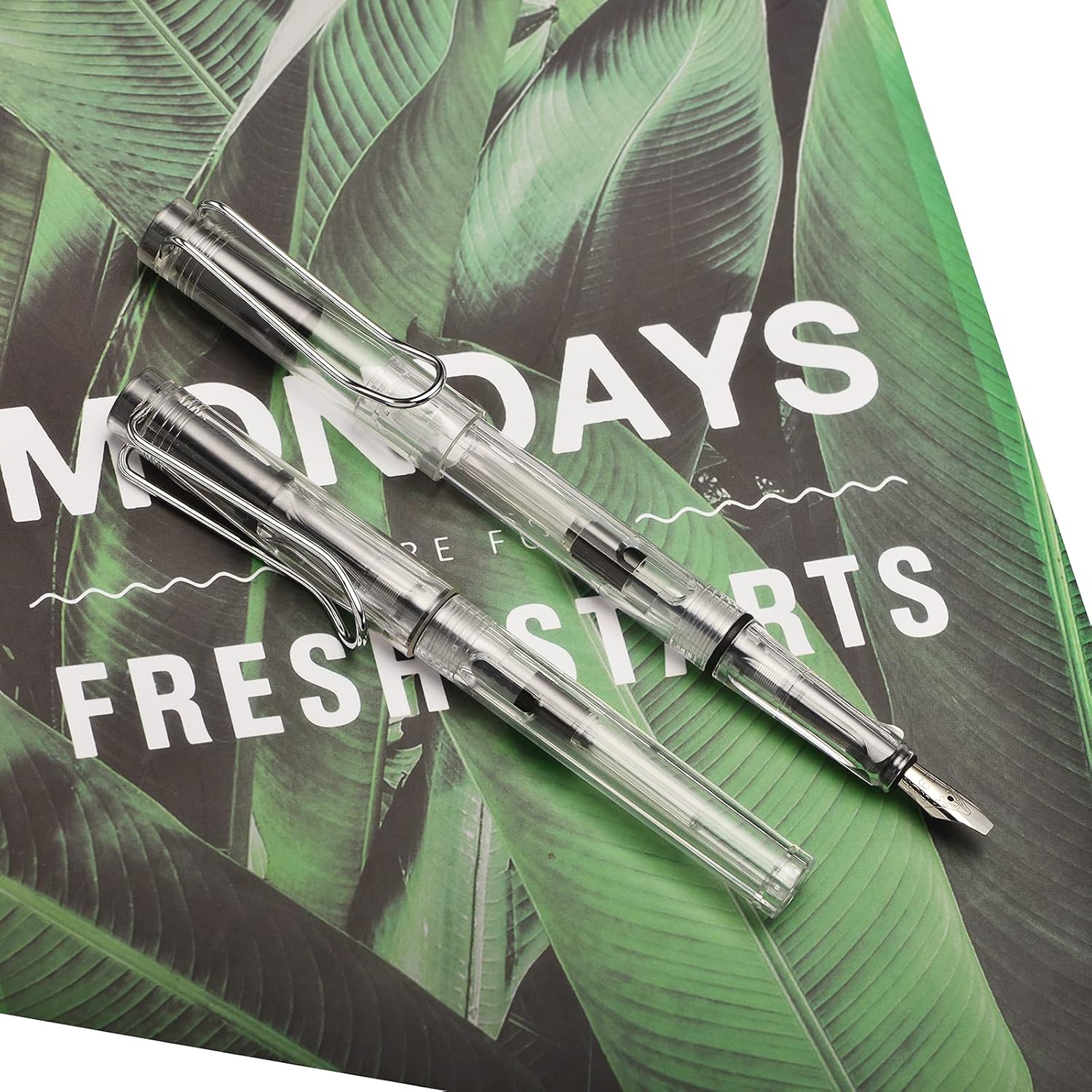 Lanxivi Yongsheng Calligraphy Fountain Pen Set Transparent Clear, 6 Assorted Tip Sizes for Art Drawing and Writing Signature