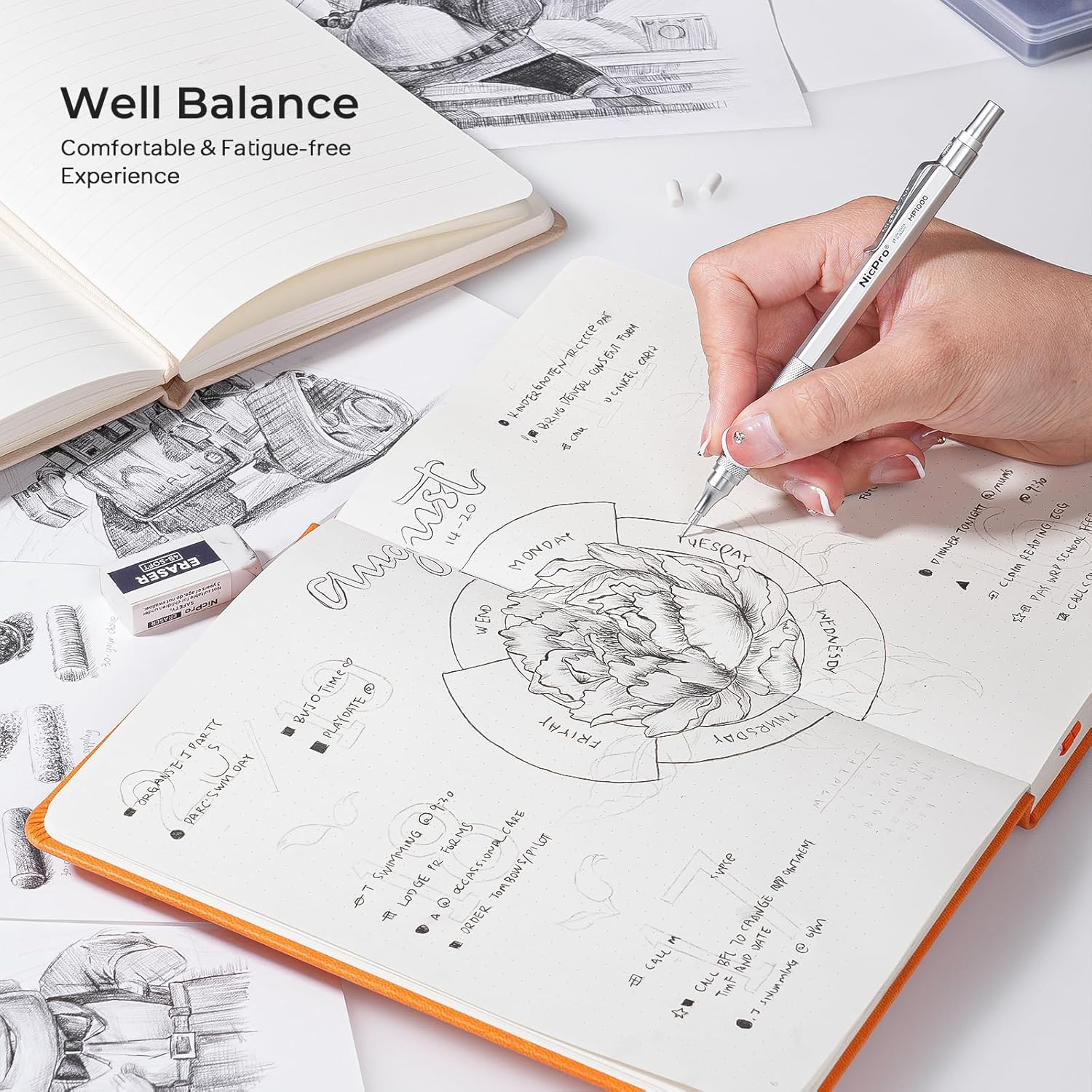 - 【Metal Threaded Anti-skidding Grip】: Nicpro MP1000 pencil adopt fancy hexagon barrel design with metal threaded grip, well balance pencil which bring you comfortable & fatigue-free writing & drafting experience