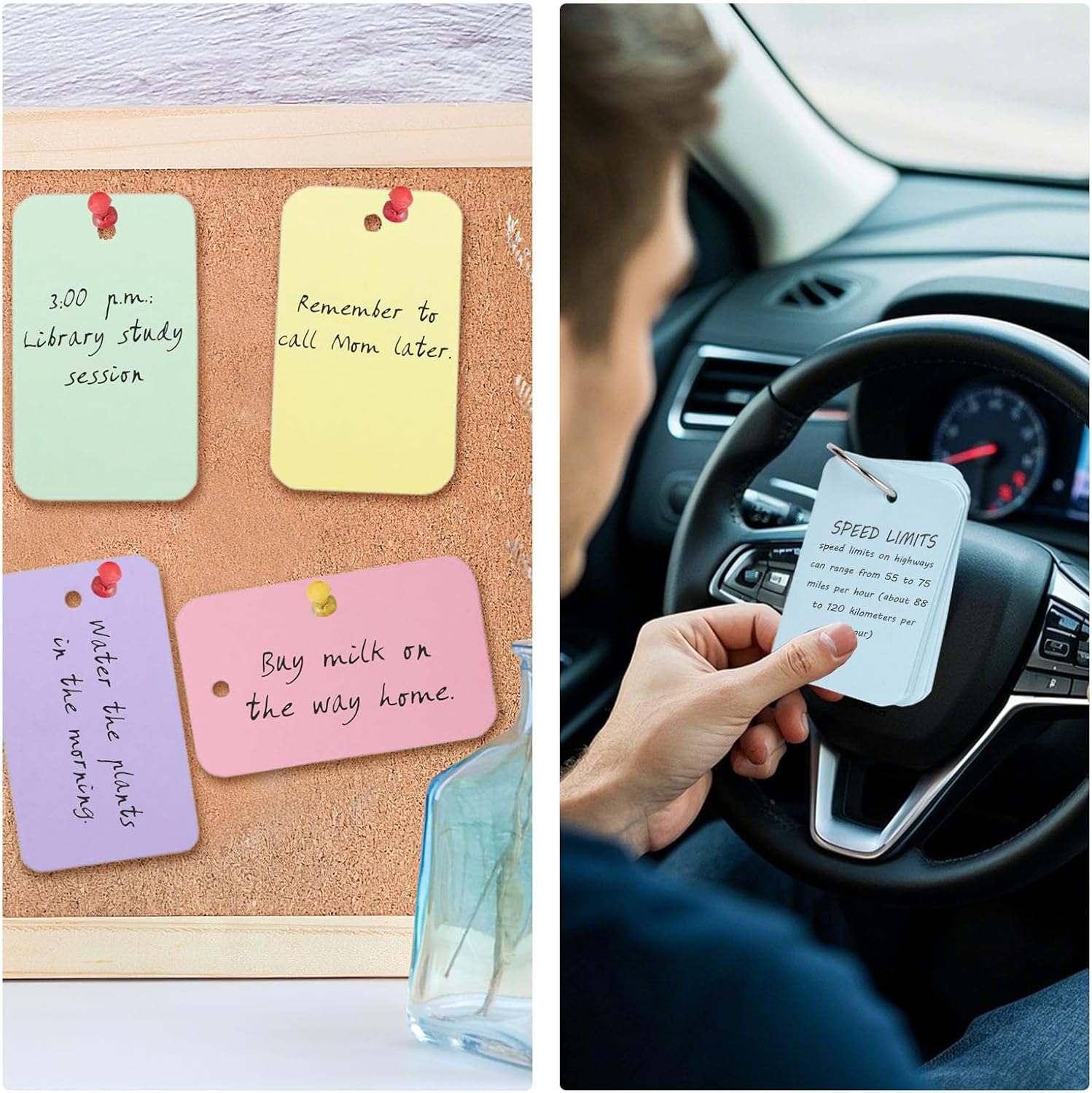 - Super Value Pack β Includes 1,500 blank index cards with rings (2.2β x 3.5β) in 7 colors: white (300 pcs), and blue, green, purple, yellow, orange, red (200 pcs each), plus 8 durable metal rings. Perfect for students, teachers, and training institutions