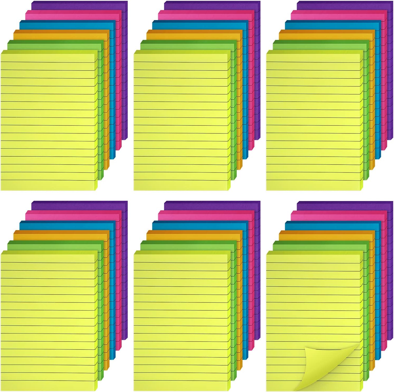 Outus 36 Pack Lined Sticky Notes 4 x 6 Inch Colorful Note Pads Back to School Lines Bright Ruled Self Sticky Pads Memos for Teacher School Classroom Office Supplies, 6 Colors (Fresh Color)