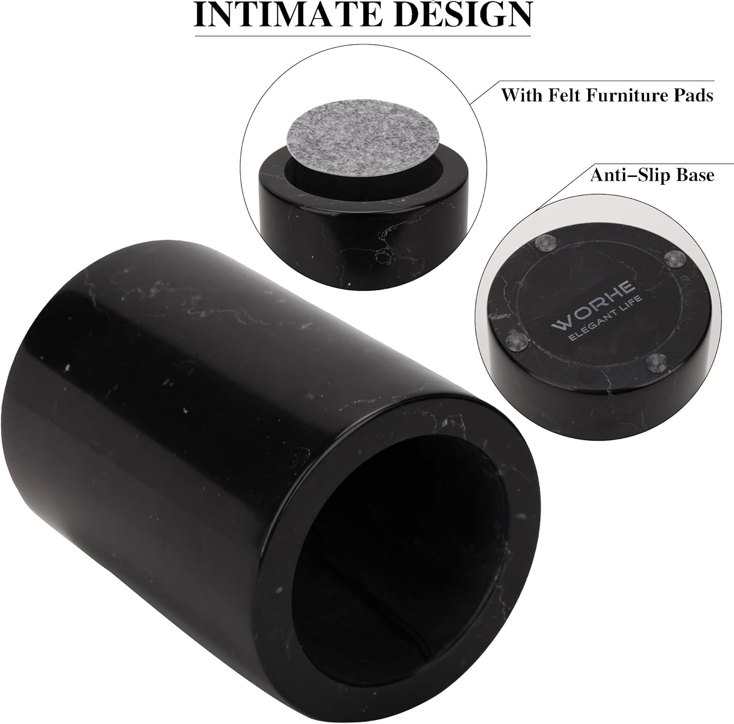 WORHE Natural Marble Pen Holder, Stylish Stone Caddy for Desk, Multi-Purpose Makeup Brush and Office Supply Storage Organizer, Desks Accessory Toothbrush Cup for Home School Black (DL003)