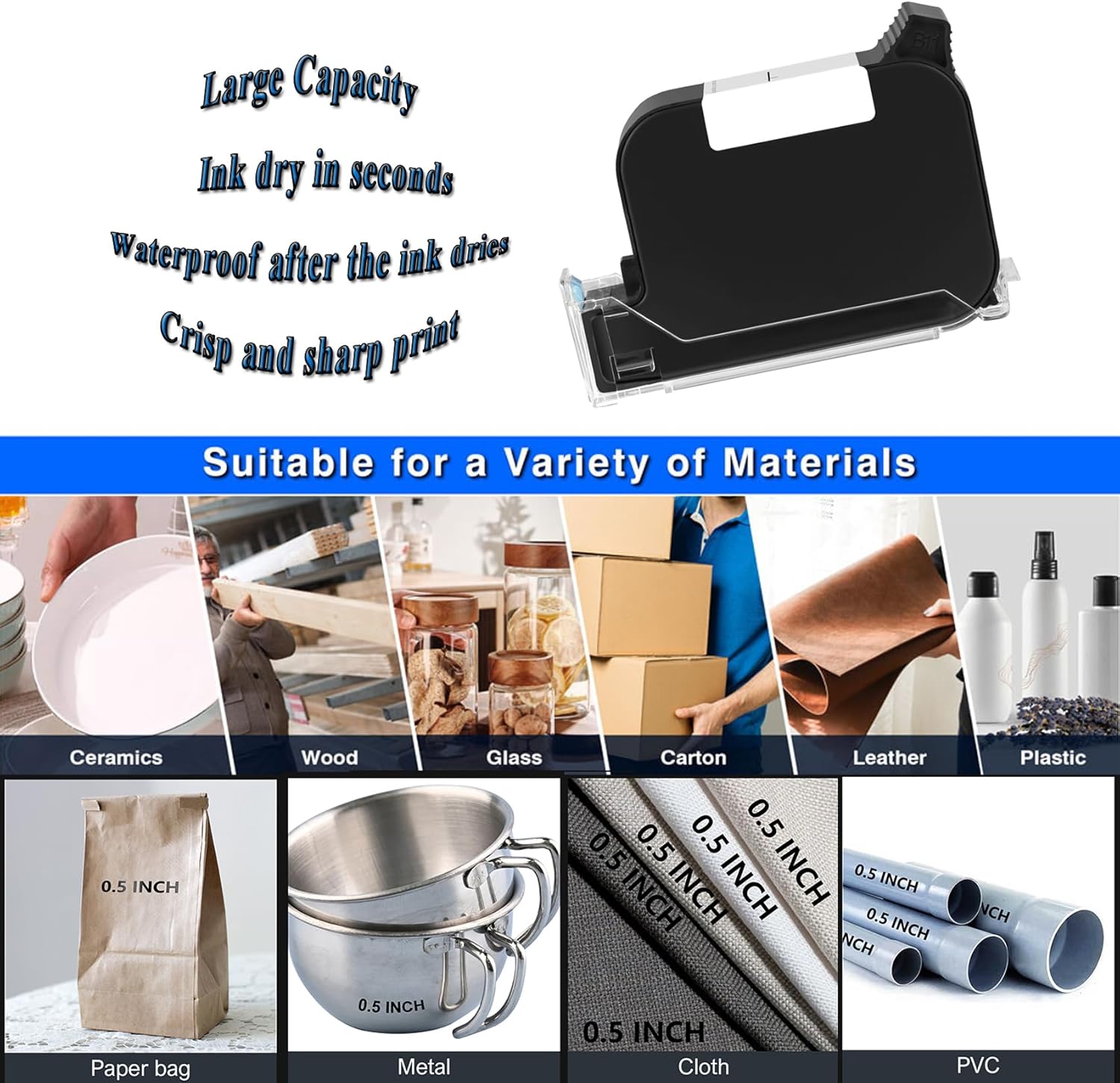 - HIGH-resolution INK CARTRIDGE: TIKTONER Original handheld printer ink cartridge printing is smooth, crisp and brightness colored. Prints with strong adhesion on porous materials.