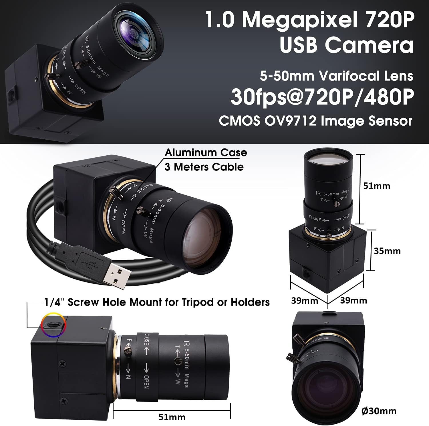 SVPRO Telephoto Webcam Mac Compatible 1MP USB Camera with 5-50mm Optical Zoom Lens Manual Focus Webcam UVC PC Cam for Windows Linux Android MAC,1280x720 USB2.0 CMOS Video Camera for Security,Streaming