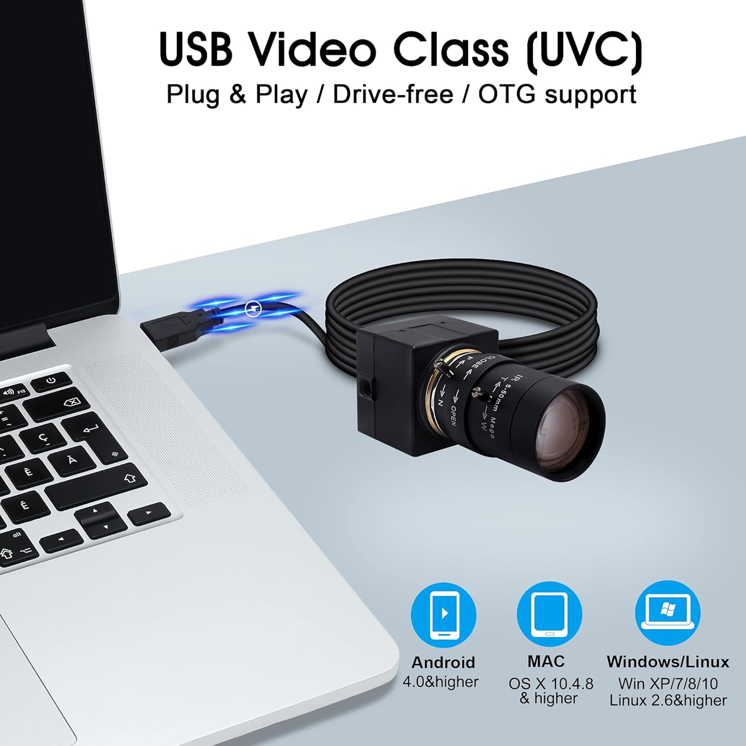- 【Plug Play Camera with UVC】USB camera UVC compliant, standard USB2.0 interface with 3 meters USB cable, easy to set up without install any additional drivers,real plug and play. Support to use on Windows, Linux, Android and Mac OS systems for PC computer,laptop,desktop,tablet. OTG protocol support for mobile phones
