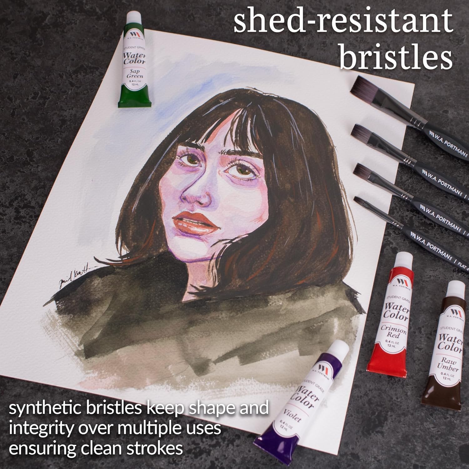 WA Portman Flat Paint Brushes 4pc Set - 100% Vegan, Cruelty-Free Artist Paint Brushes for Acrylic Painting and Watercolor Painting - Professional Art Brush Set with Triangular Comfort Grip