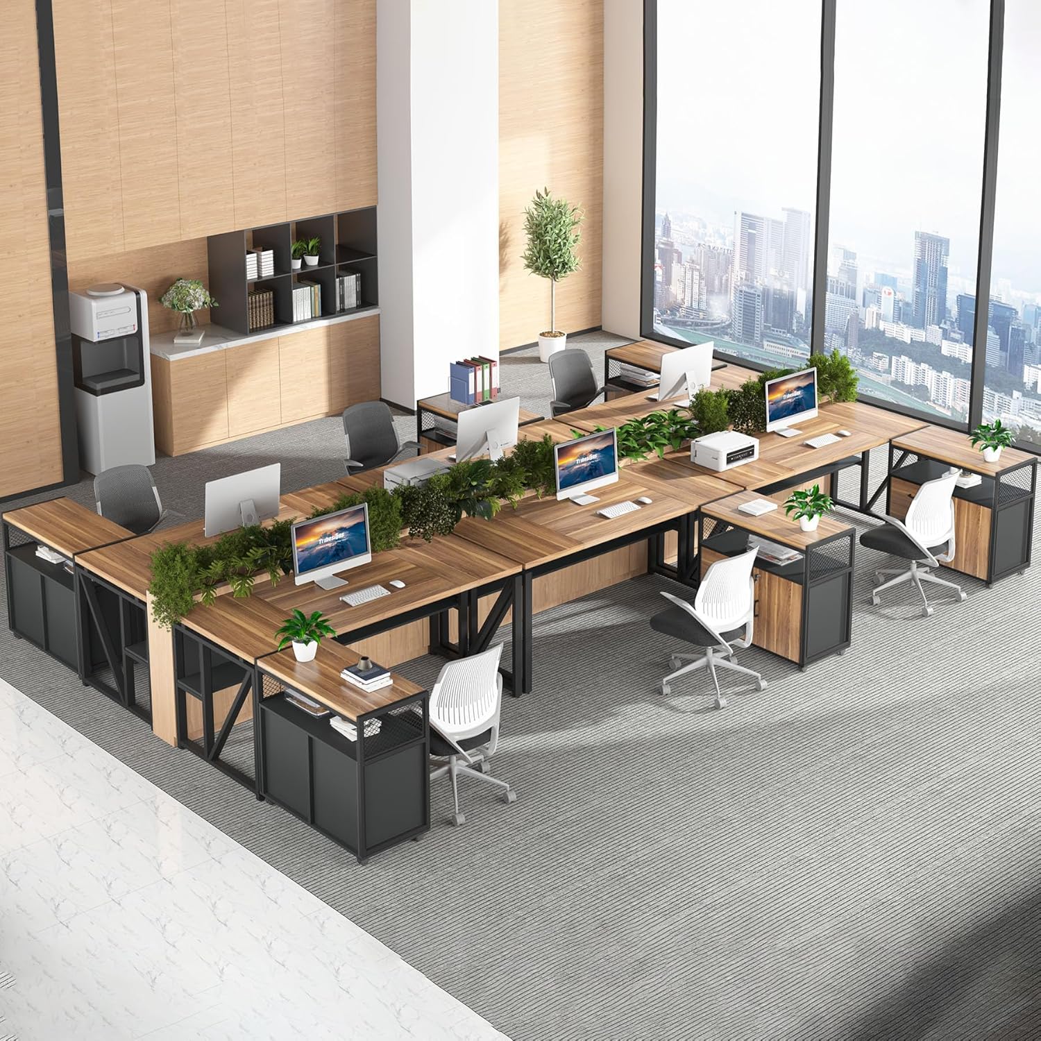 - 【Sturdy & Beautiful finish】:The office desk constructed of heavy-duty metal frame and thickened compressed board (1.2 inch) ensure durability and stability. The furniture set is a combination of vintage colors and black match any decor style.