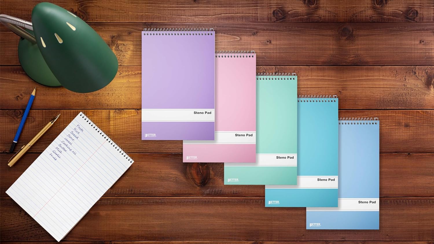 Better Office Products Spiral Steno Pads, 10 Pack, 6 x 9 inches, 80 Sheets, White Paper, Gregg Rule, Assorted Pastel Color Covers, 10 Steno Notebooks