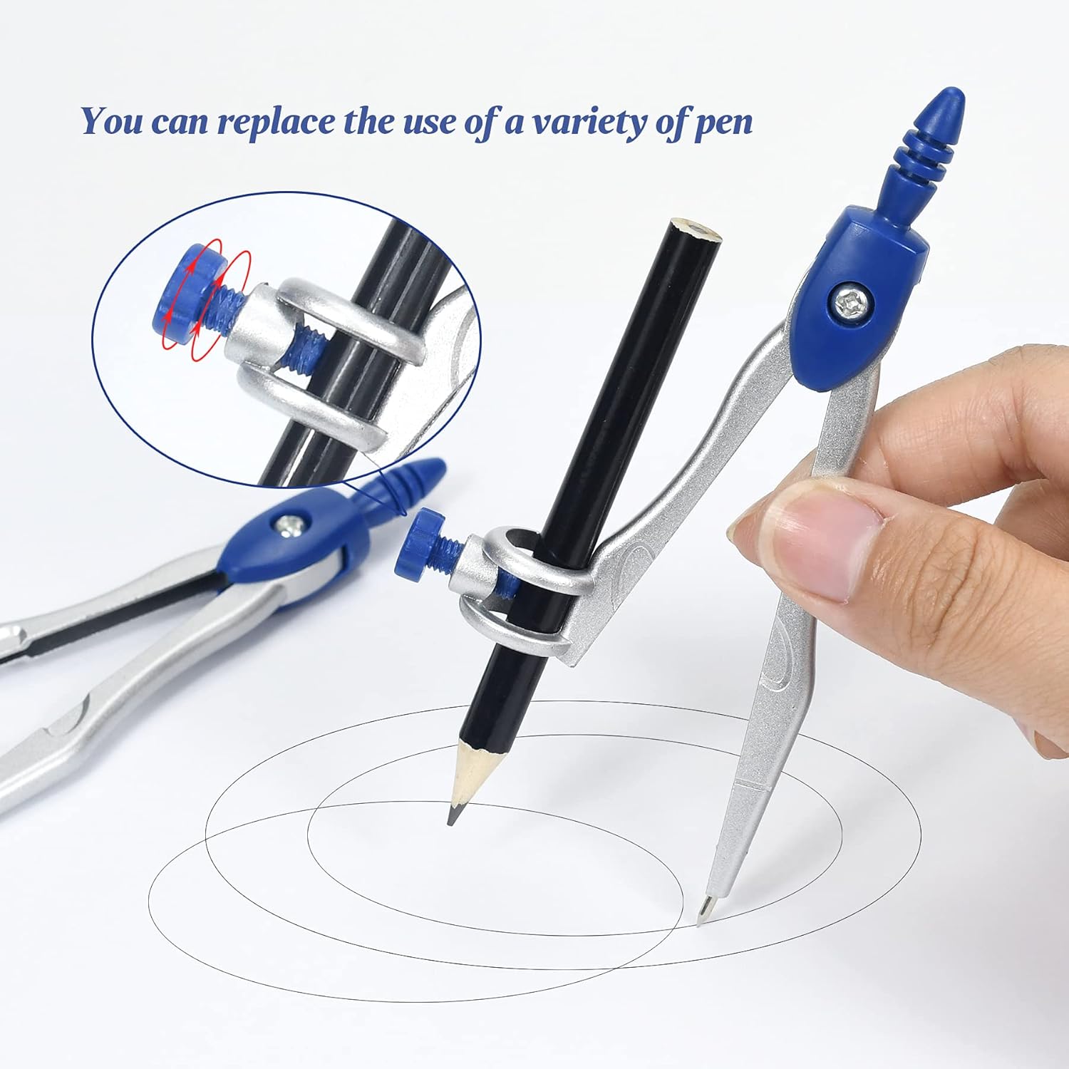 - A Practical Compass Geometry Set:Long-Lasting metal compasses will not bend, Ergonomically designed compass head is comfortable to hold, Universal Holder Compass work with any standard sized pencil or pen