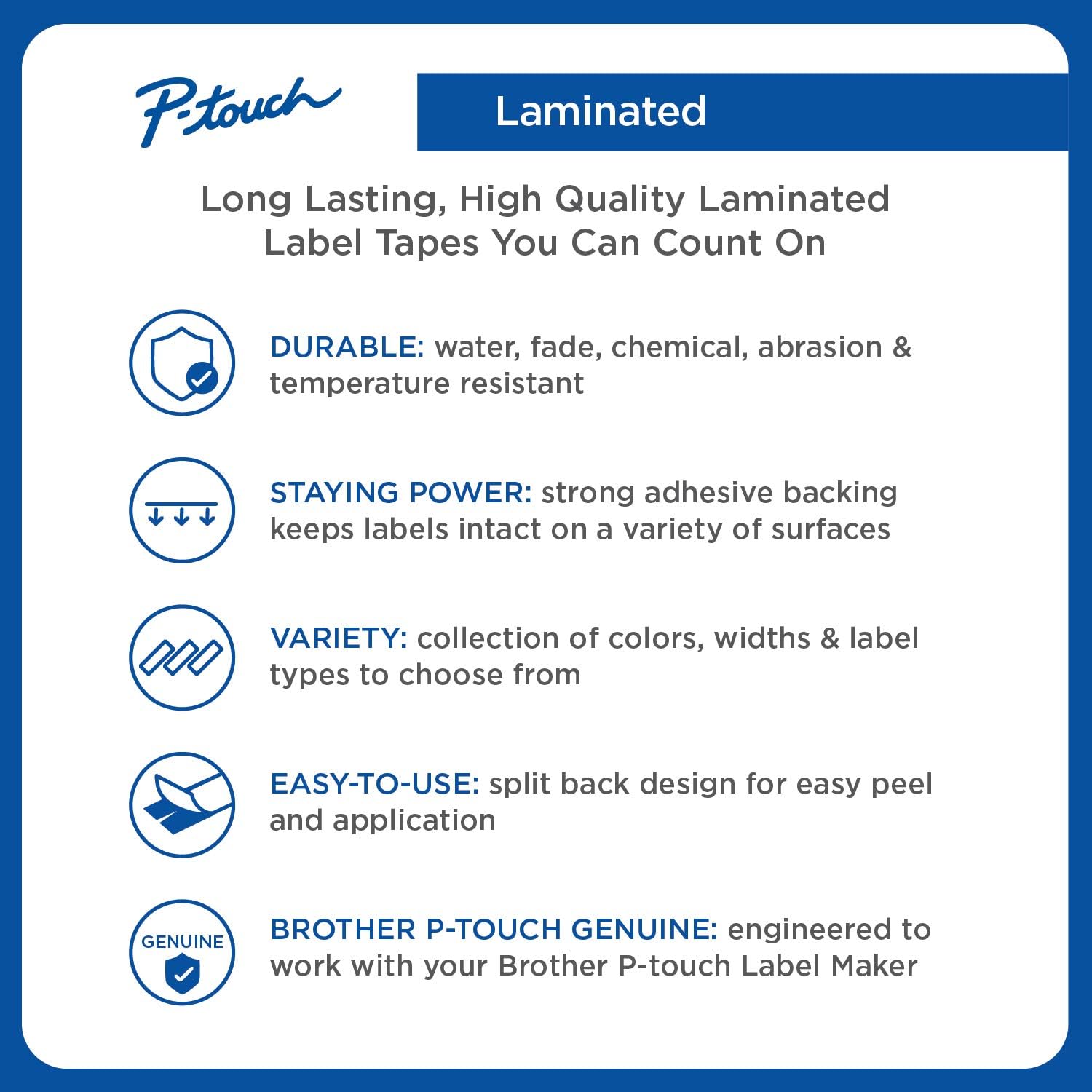 - EASY TO APPLY β P-touch tapes are designed with a sturdy laminated adhesive backing and an easy-to-clean laminated surface. The split-back design makes it easy to apply.