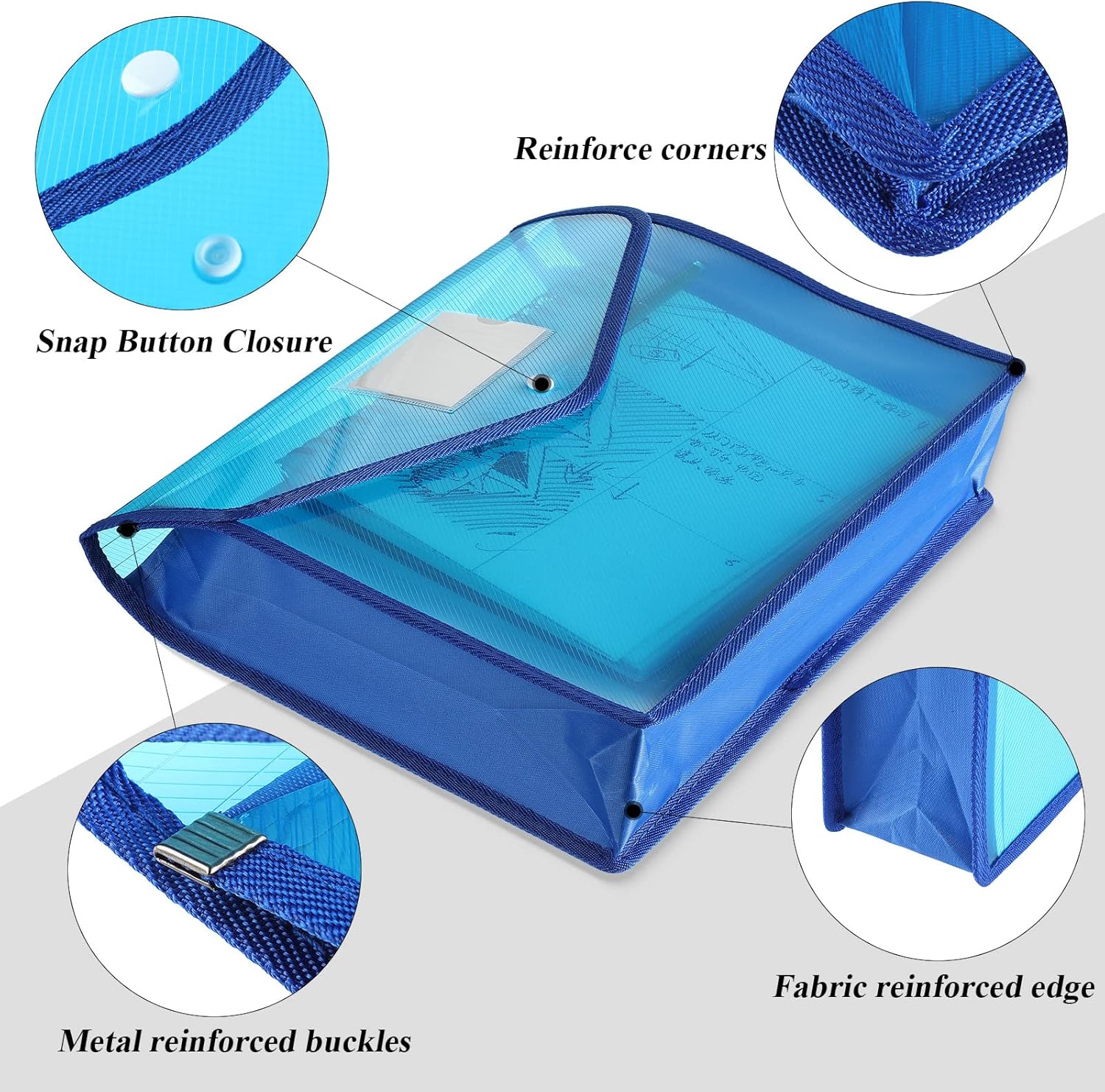 - Thoughtful design: the plastic folder is equipped with a business card slot to distinguish documents easily; Cloth gusset with sewn edge trim can guard your fingers from scratches; Plastic file folders with snap closure can keep your files safe and prevent them from falling out