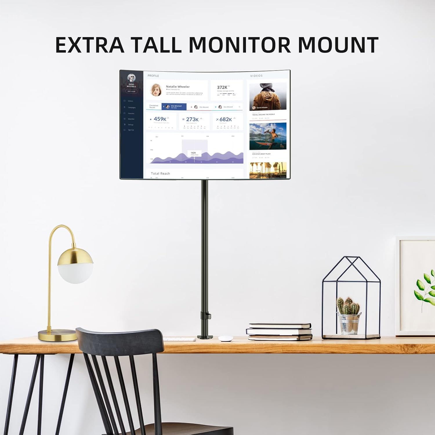 - REDUCE EYE AND NECK STRAIN: When you use this extra tall adjustable single monitor arm, the first and foremost benefit is the ability to change a monitor’s height, depth and sometimes even its angle. This customization allows a person to position their monitor in the exact spot it needs to be to prevent them from straining their neck and eyes while using over an extended period.
