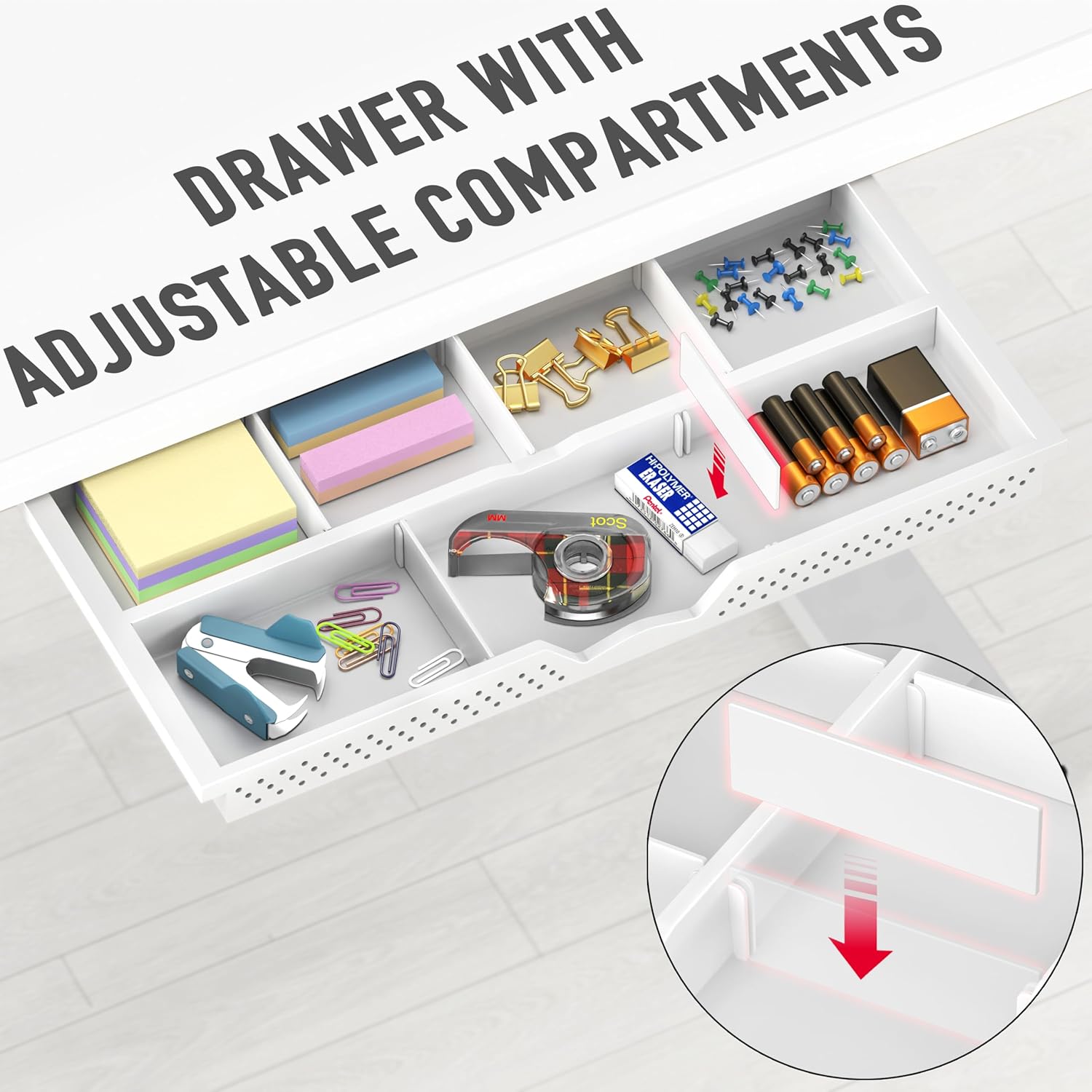 SHW 40-Inch Electric Height Adjustable Standing Desk with Drawer, Memory Preset and Cable Management Tray, White