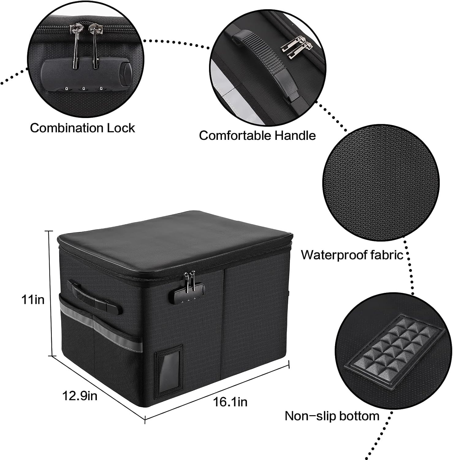 - Fireproof and water-resistant safe: The exterior material of Fireproof File Box is made of upgraded anti-static silicone coated fiberglass, which can withstand temperature up to 2000℉. Fireproof Document Box is not only fireproof but also highly water-resistant, so you don't have to worry about your important documents getting wet by rain.(Does not include folders)