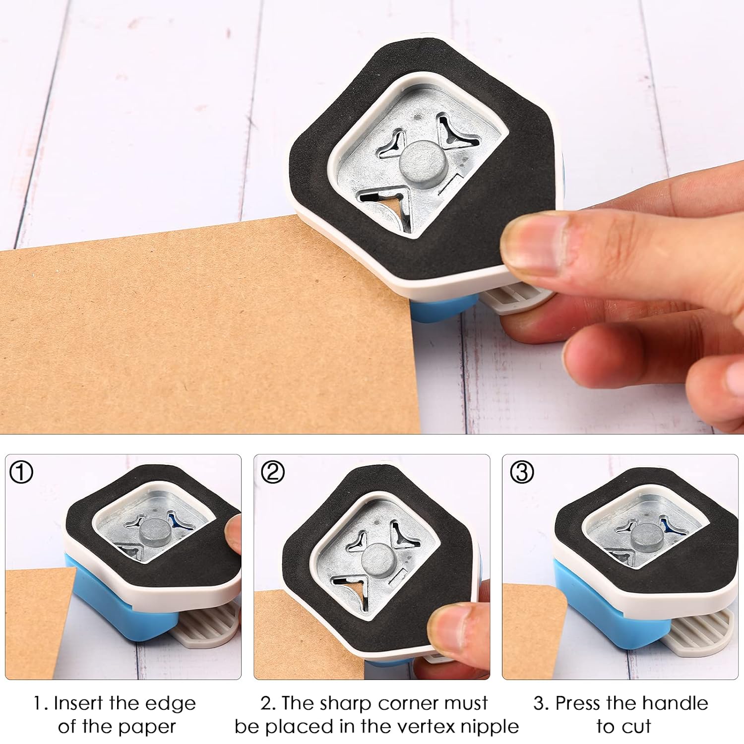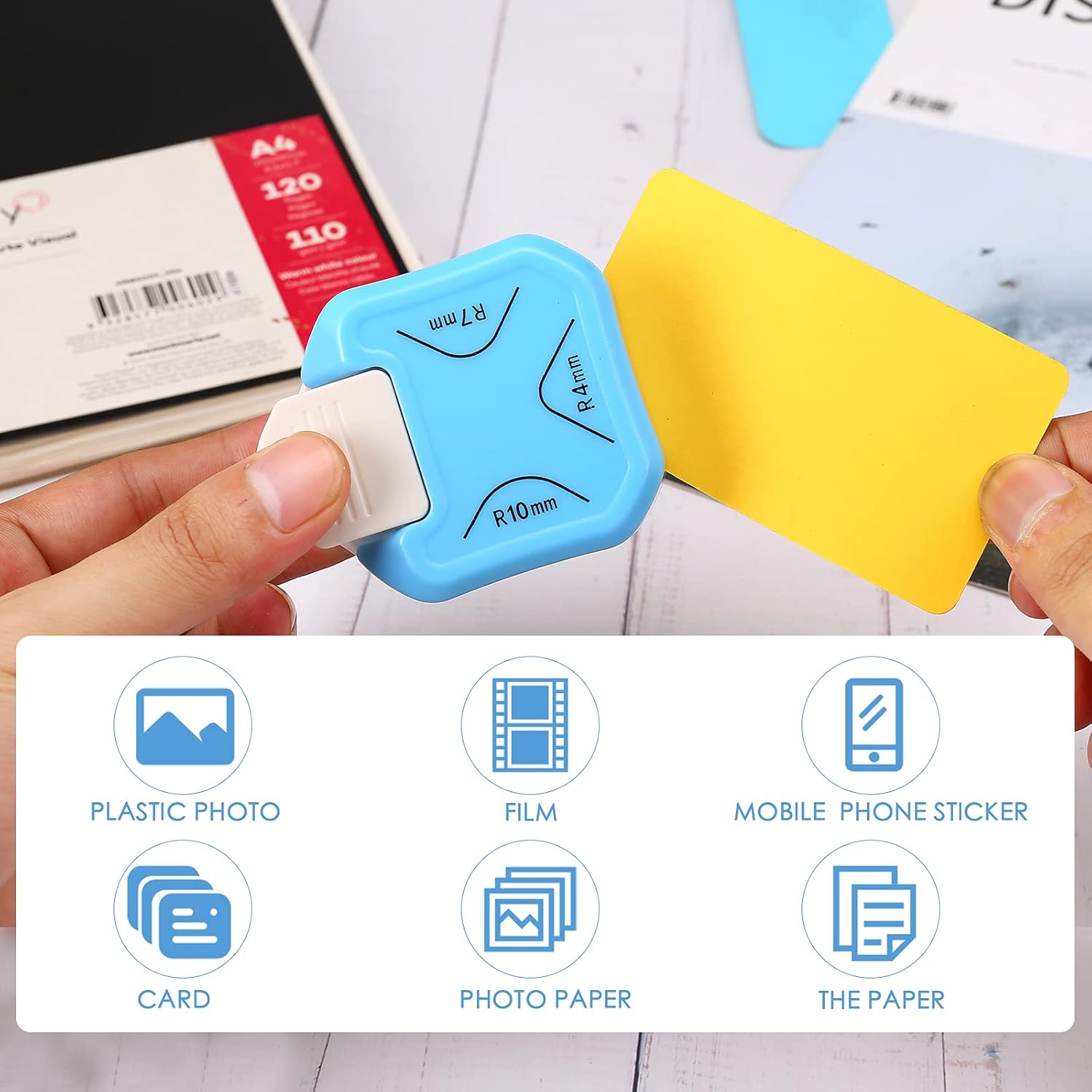 - 3 Way Corner Rounder Punch: Create perfectly finished scrapbooks and cards with 3-way paper corner rounder. Designed to punch 4mm, 7mm, 10mm three different corner, this corner punch is the perfect tool for giving some extra vitality to your creations. Give your paper craft projects an elegant finishing touch with this 3 in 1 rounded corner punch.