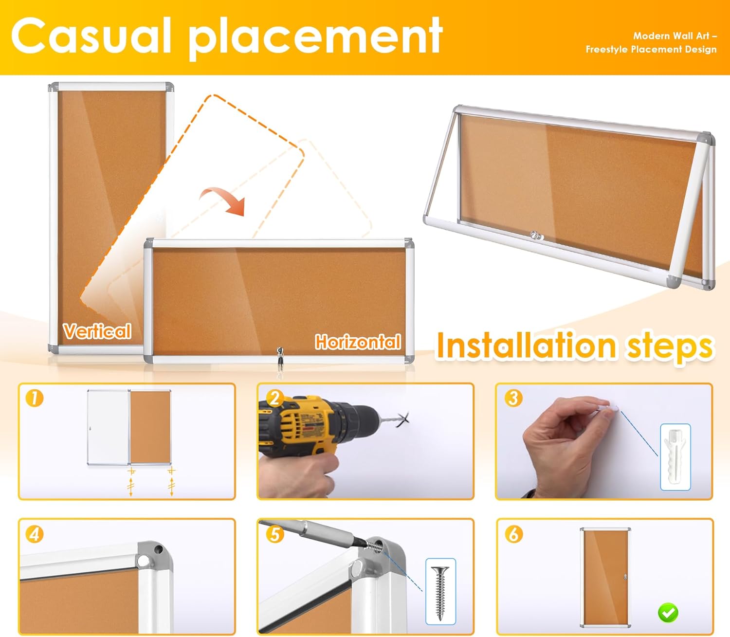 - Versatile Use —Can be used for a variety of purposes, including posting announcements, displaying artwork or photos, and presenting information for public viewing.With a simple and intuitive design ,it's convenient to post and update.