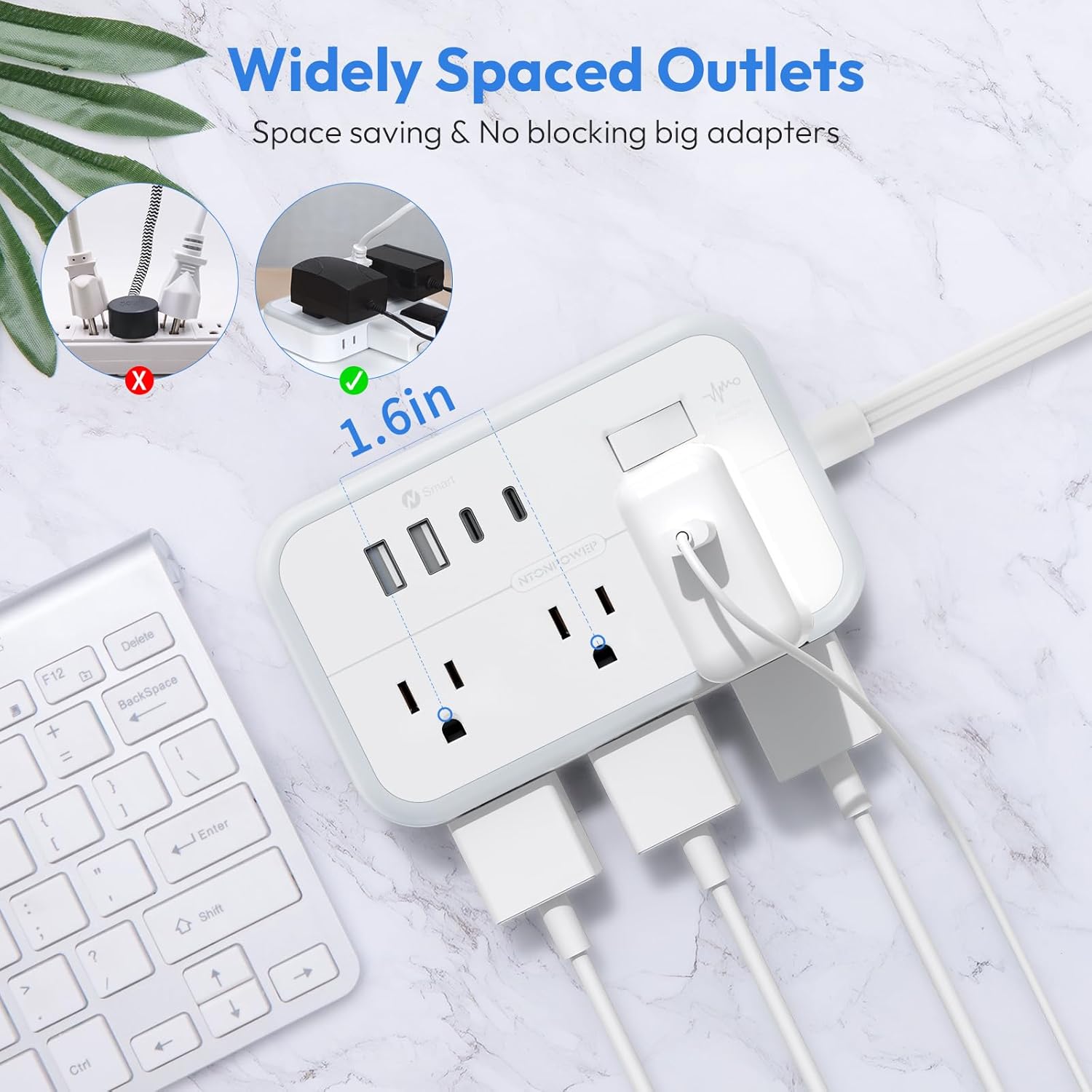 NTONPOWER Surge Protector Power Strip with 6 Outlets 4 USB Charging Station(2 USB C Port), 5 Ft Flat Plug Extension Cord, Outlet Extender for Indoor, Home, Office Supplies, Dorm Room Essentials