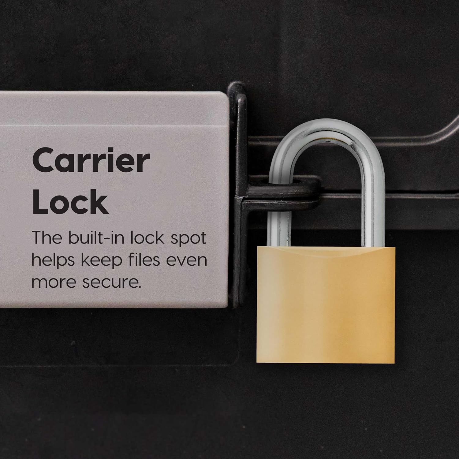 - SECURE LATCHES - The durable and secure latching lid guarantees that the contents of the file bin remain intact and safe from accidental spills or unauthorized access.
