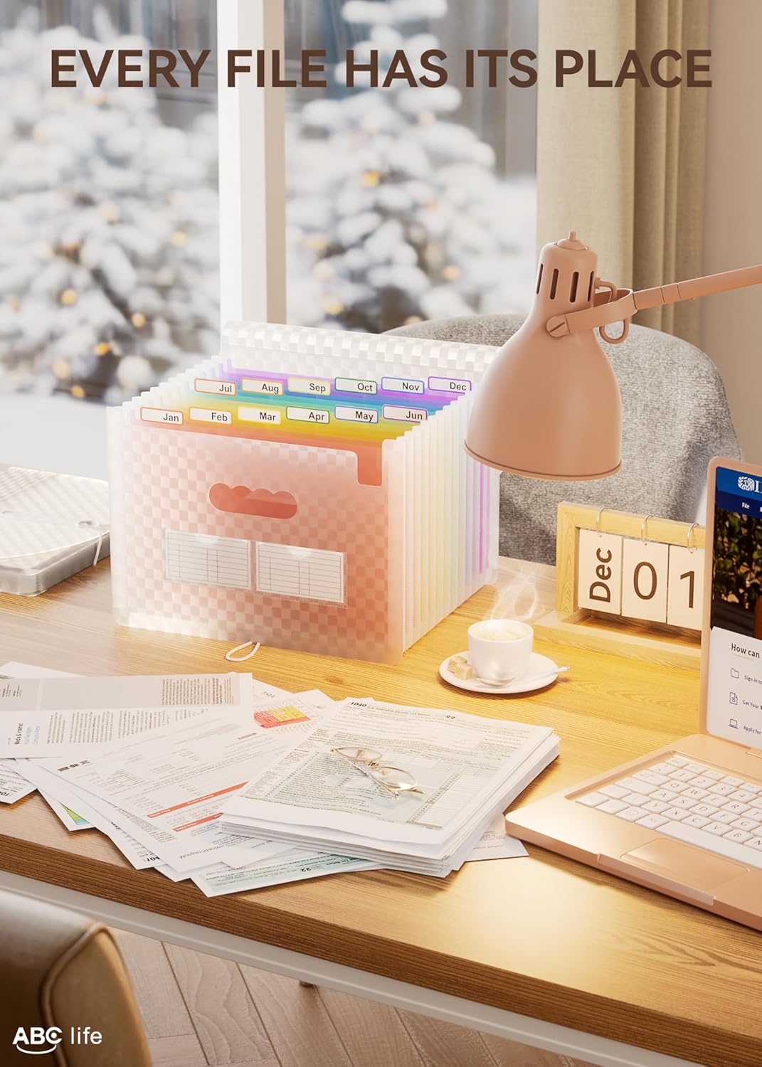 - ✅【12 POCKETS MONTHLY FILE ORGANIZER】ABC life 12 pockets Accordian File Organizer suitable for filing tax and storing important family documents. Product size is 13 "x 9.4"x 14", which can be used to store plenty of Letter/A4 size files.