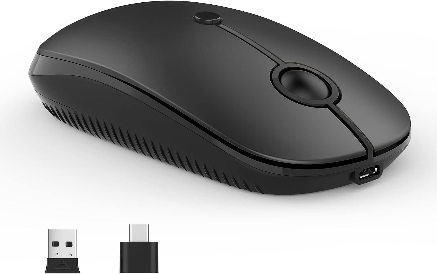 Type C Wireless Mouse,Vssoplor USB C Rechargeable Portable Quiet Mouse USB and Type C Receiver Dual Mode Laptop Mouse for PC, Laptop, MacBook, Tablet-Black