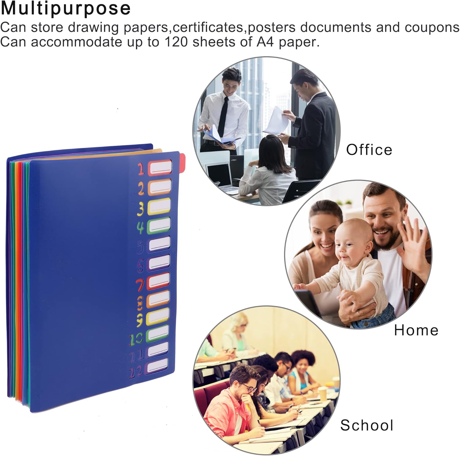 Rainbow Tab Expanding File Folder - 24 Pockets, Durable A4 Letter Size Organizer, Water-Resistant Plastic Dividers, Home/Office/School Document Holder (Blue)