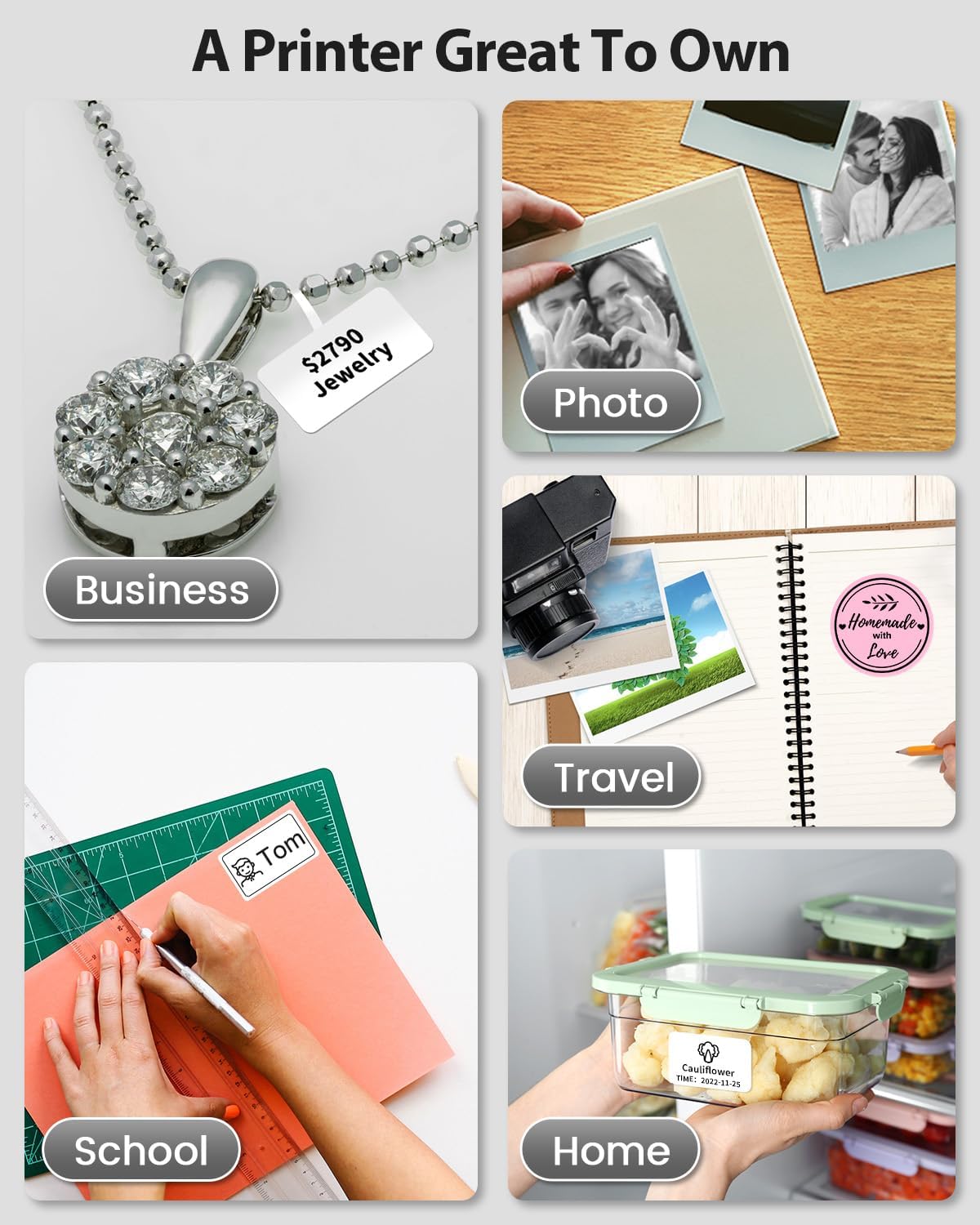 - Design and Create Your Own Labels : The label maker machine with tape is widely used in home, office, store and life. For home organizing, organizing your kitchen, clothes,food stroage, cosmetics items, and mailings. For Store, price tag, barcode, qr code, product name. For office, office organization includes notebook tags, reminder tags, and other office supplies,kids school items and teacher classrom supplies (name labels, study notes, office files), cable and personal item identification, and small business use (jewelry tags, and more); Labeler makers bring you fun and convenience