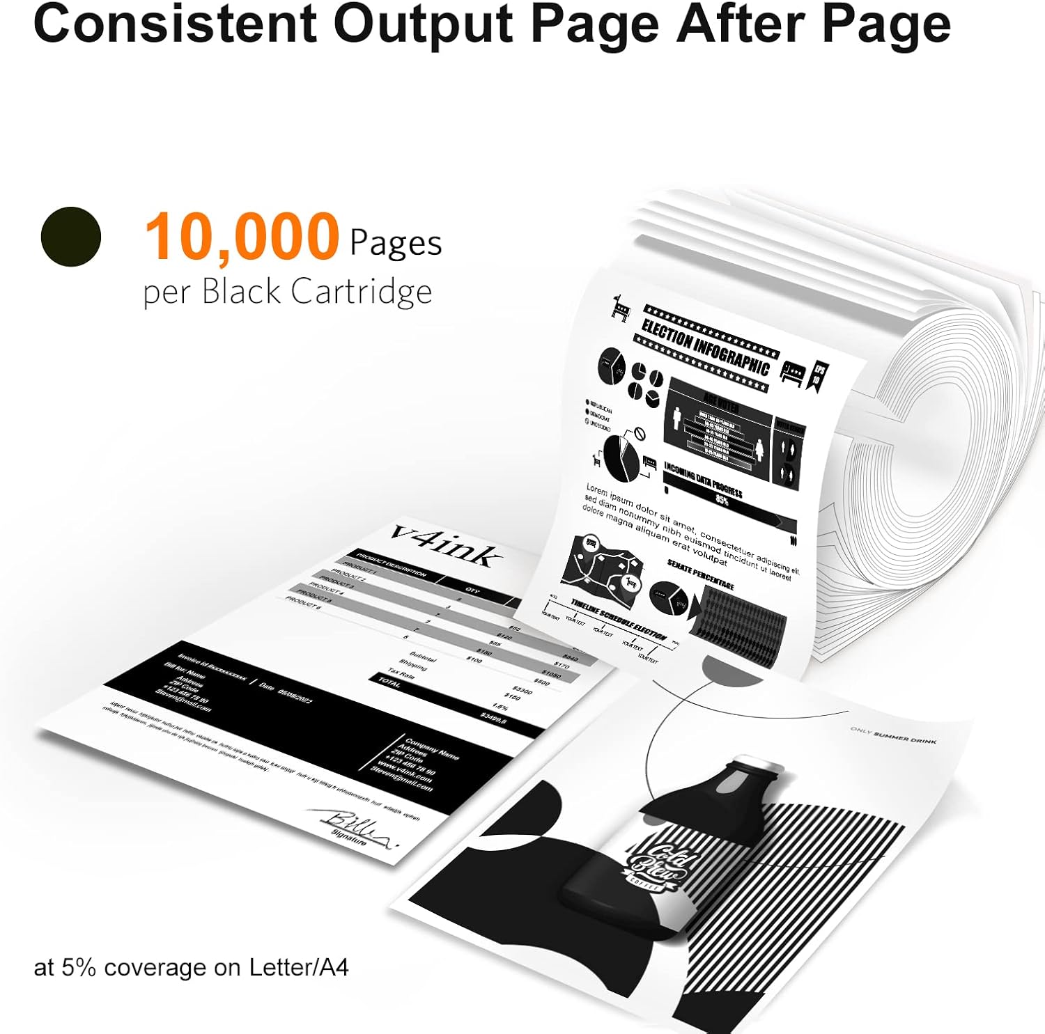 - With Chip: v4ink 58X CF258X Black compatible toner cartridge comes with a chip. There is NO NEED to remove and install the original chip, which is easy and fast to install and use.