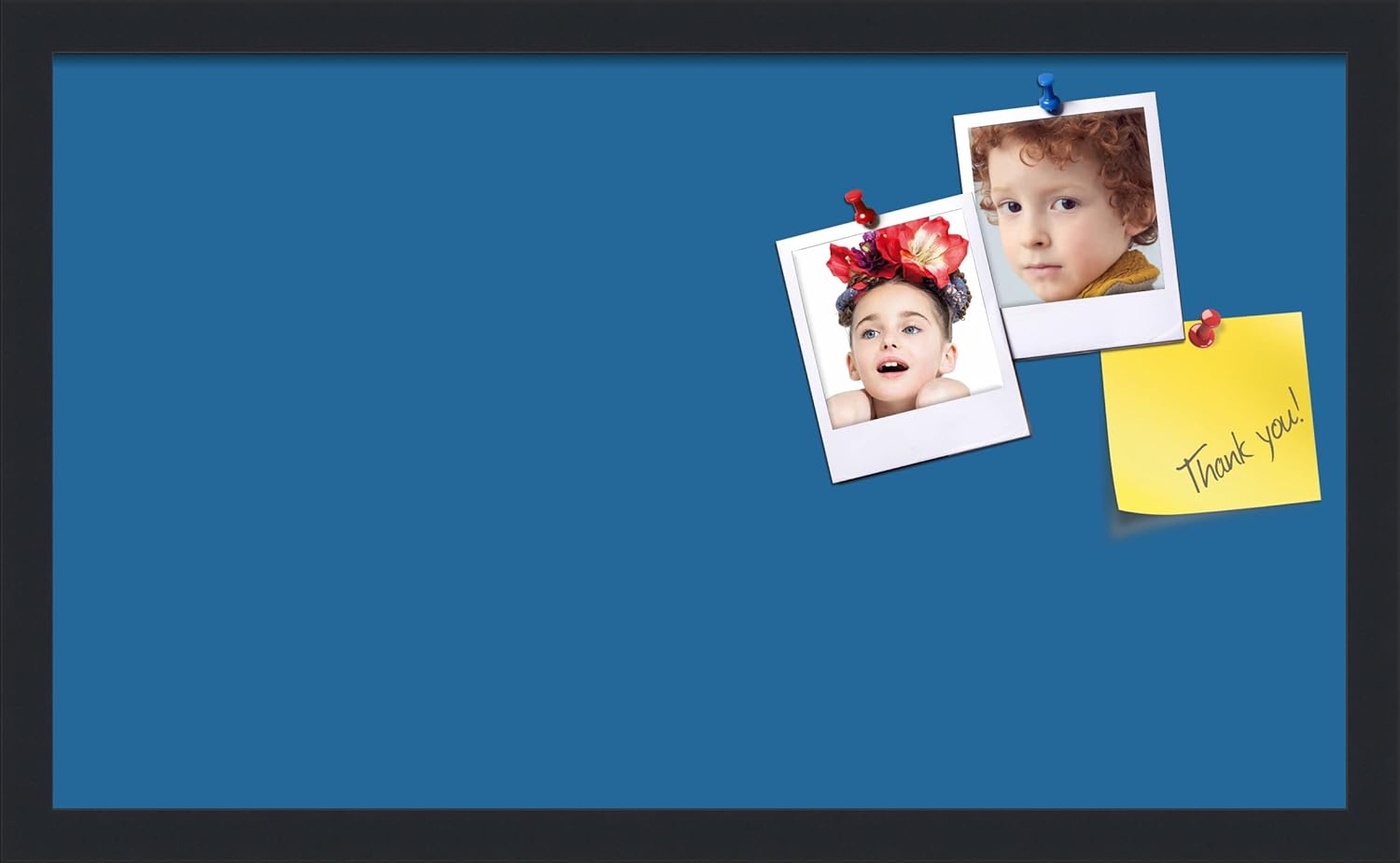 PinPix 24x14 Inch Cork Bulletin Board. This Decorative Framed Pin Board Comes with Navy Pastel Design and a Satin Black Frame. Ideal for Home Office Decor or Message Board (PinPix-1811)
