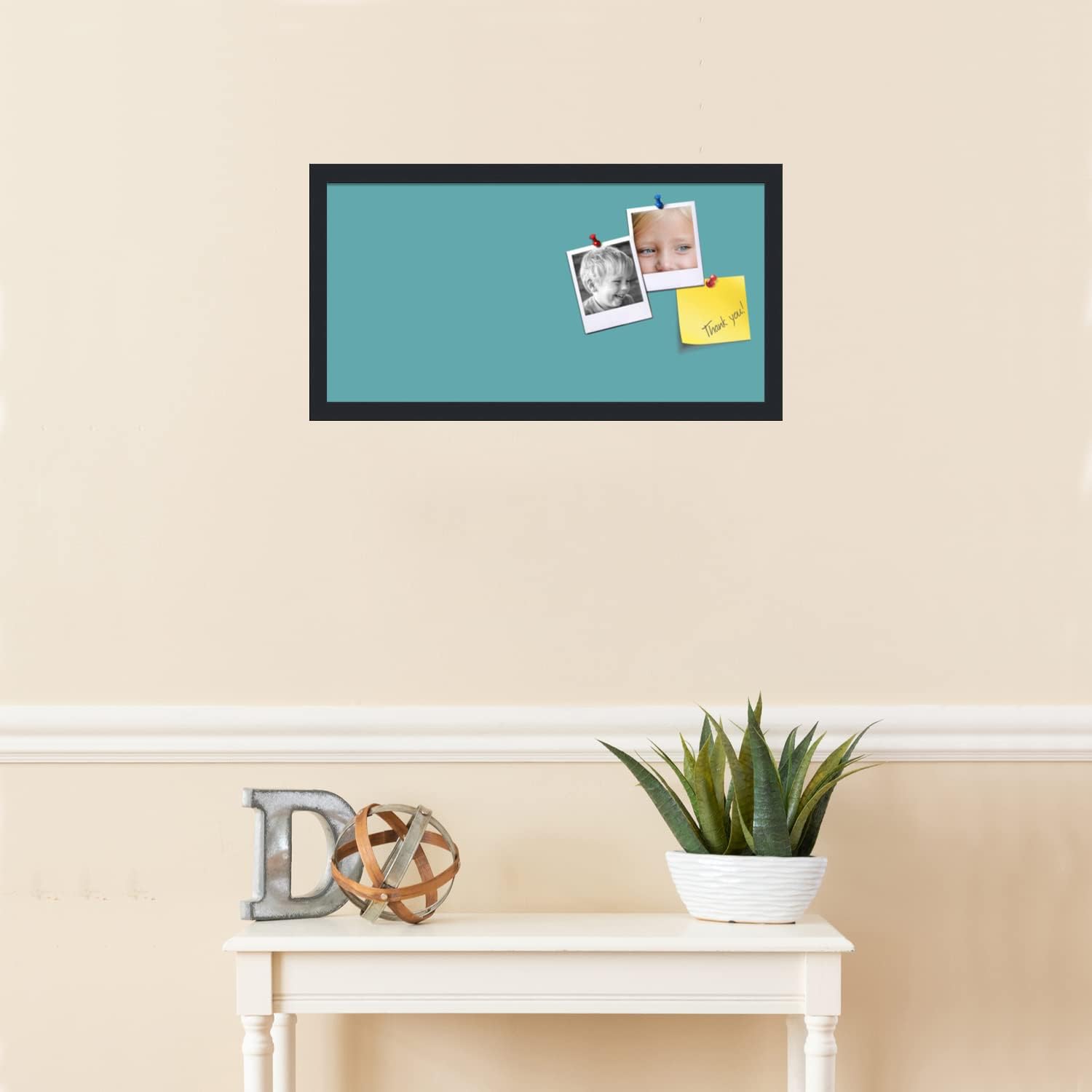 PinPix 24x12 Inch Cork Bulletin Board. This Decorative Framed Pin Board Comes with Aqua Pastel Design and a Satin Black Frame. Ideal for Home Office Decor or Message Board (PinPix-1806)