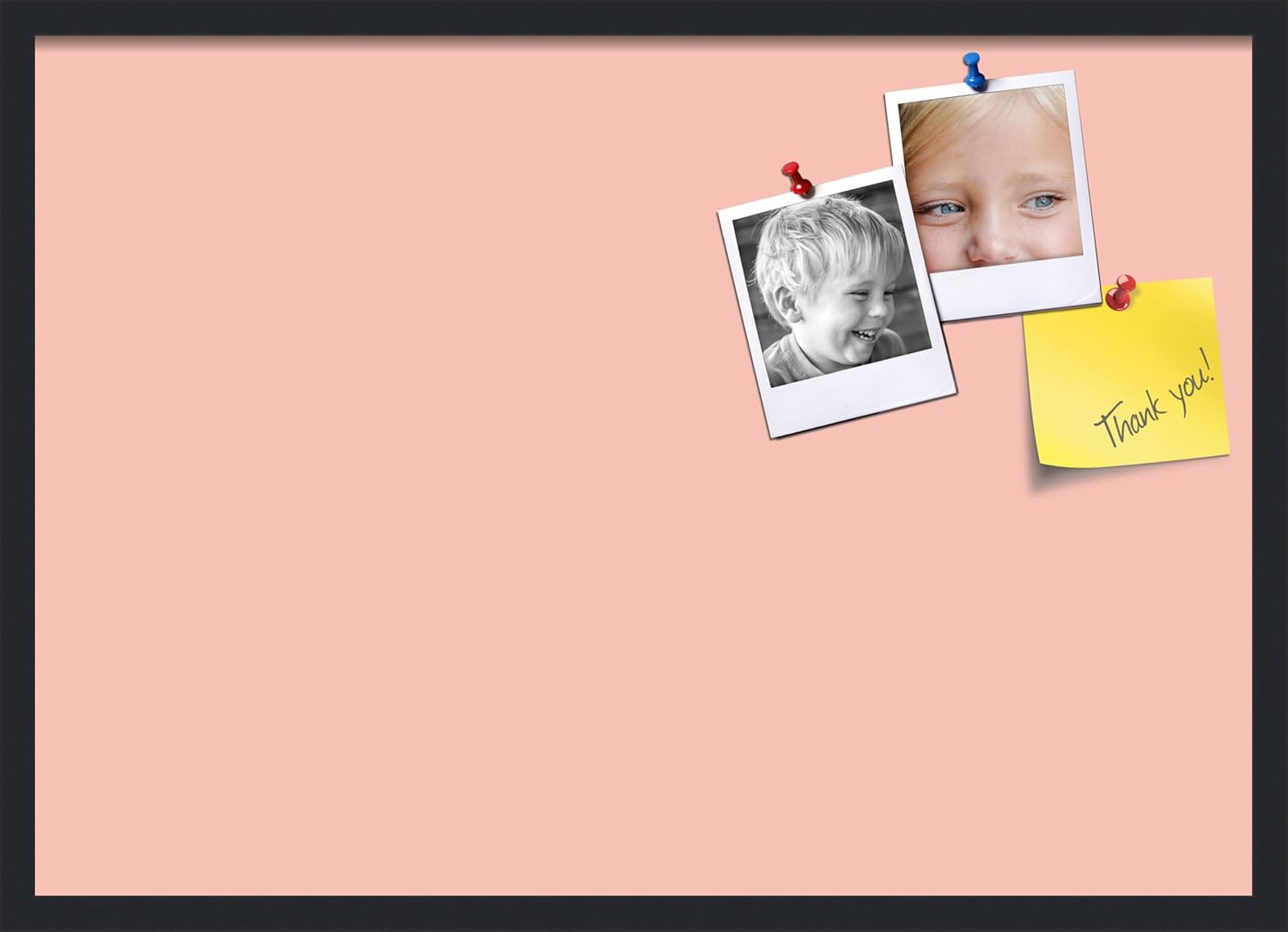 - PinPix is a patented canvas Pink Pastel corkboard picture board. It comes framed in Satin Black that is custom made to order.