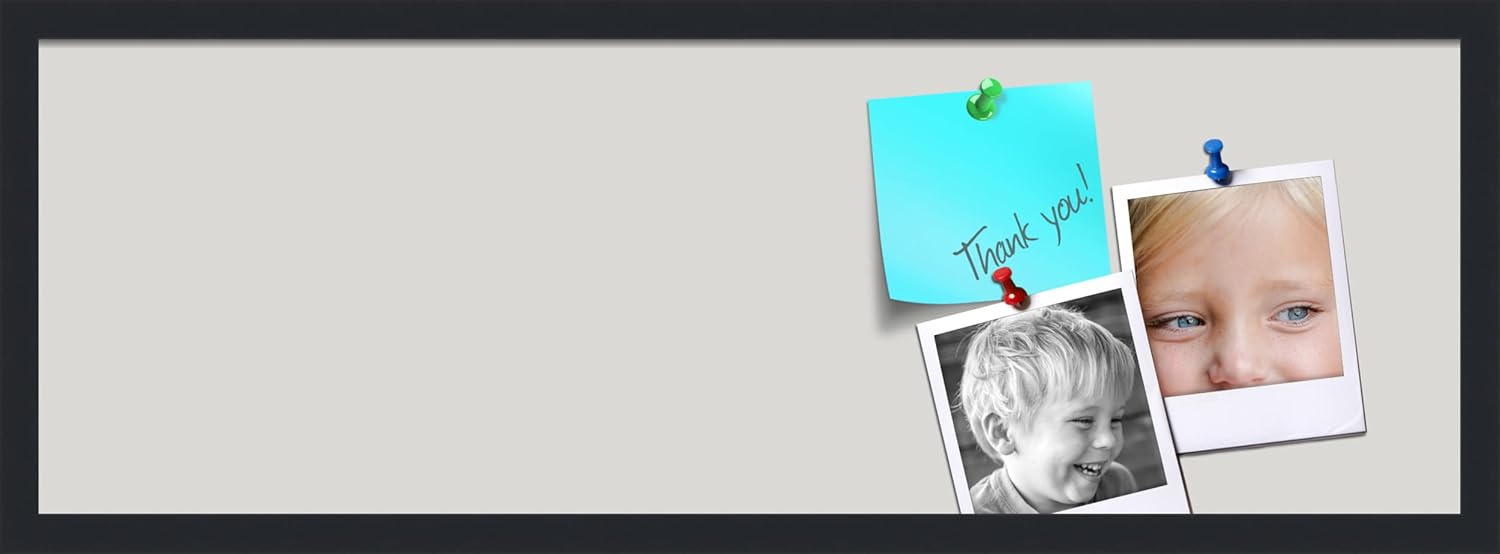 PinPix 36x12 Inch Cork Bulletin Board. This Decorative Framed Pin Board Comes with Light Stone Design and a Satin Black Frame. Ideal for Home Office Decor or Message Board (PinPix-1809)
