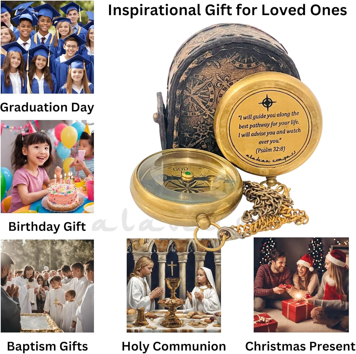 - Special Feature : Engraved Compass With Psalm 32:8, Inspirational Gift Compass in Leather Keepsake Case