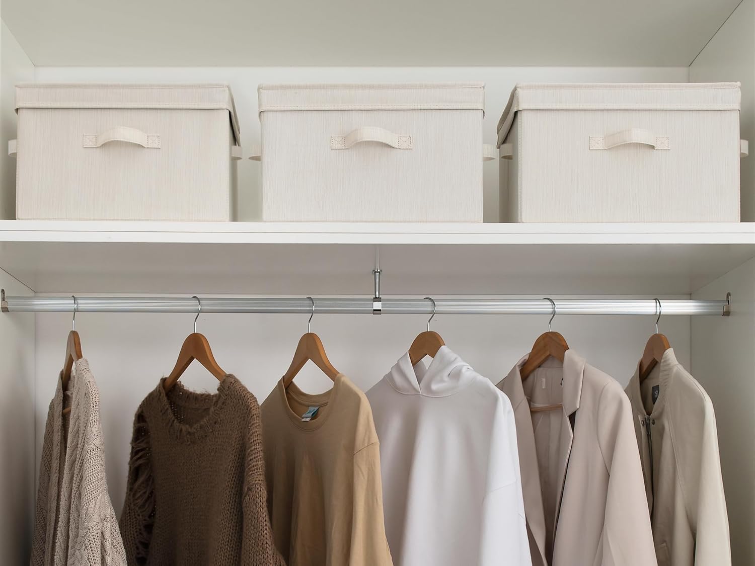 StorageWorks Fabric Storage Bins with Lid, Decorative Storage Boxes for Shelves, Stackable Closet Organizer Basket with Handles, Large, Mixing of Beige, White & Ivory, 2-Pack