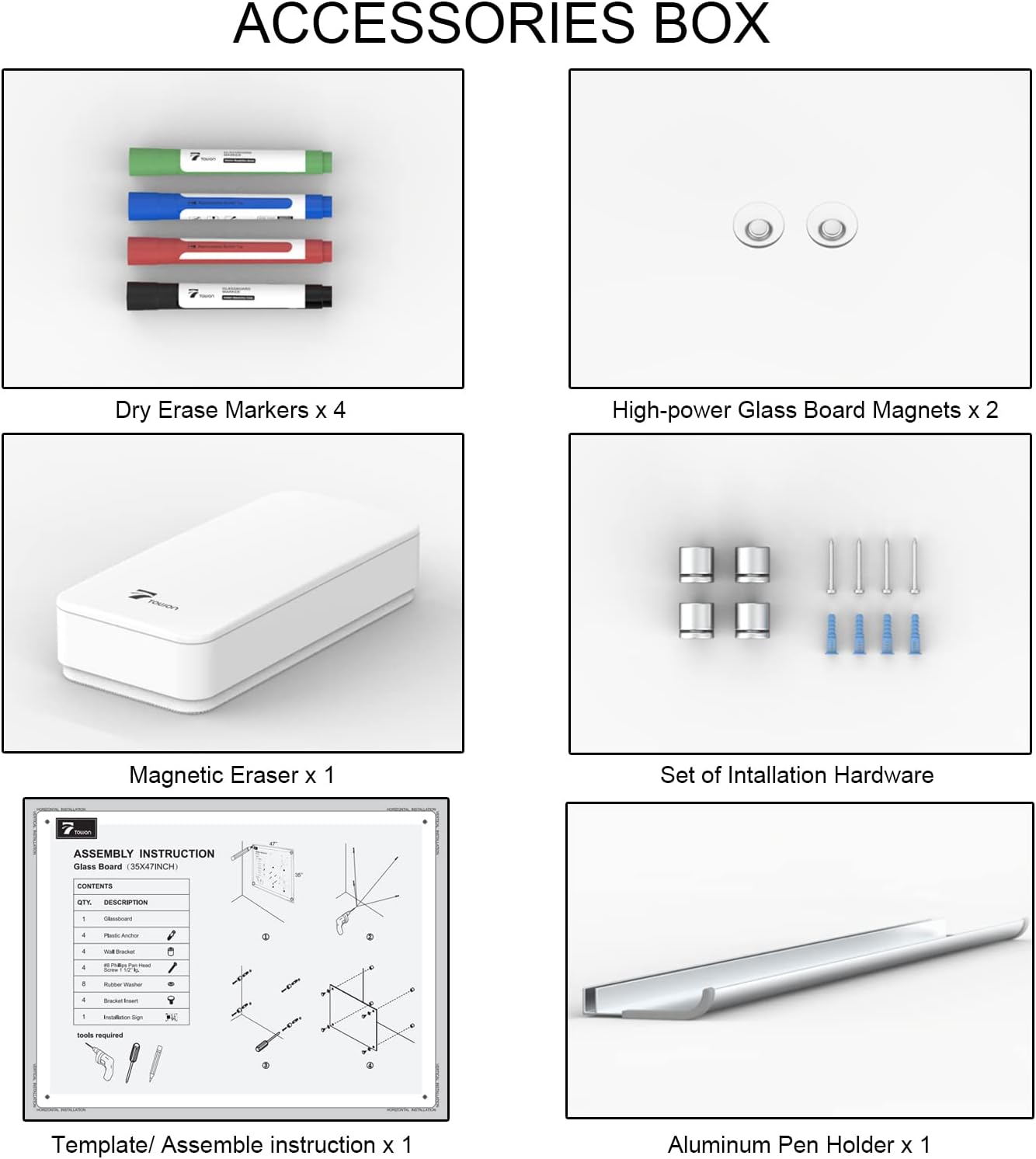 TOWON 47 x 35 Inch Glass Dry Erase Board, Magnetic Whiteboard Calendar, Monthly Planner Set, White