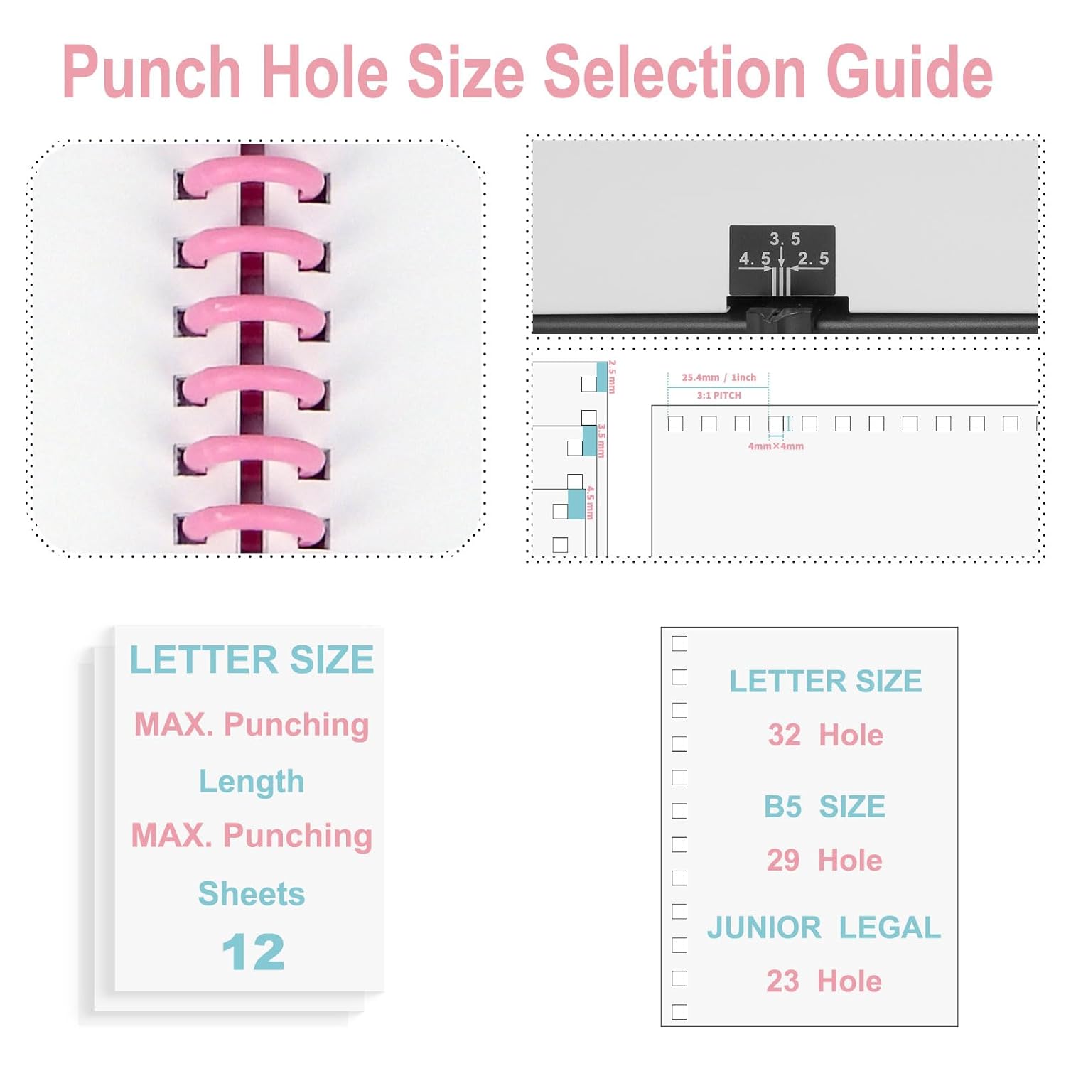 - 32 HOLE PUNCH – Punches 32 Square Holes in One Go, efficiently creates evenly spaced 4×4mm square holes, providing a secure hold for spiral and click bindings while maintaining professional document alignment.