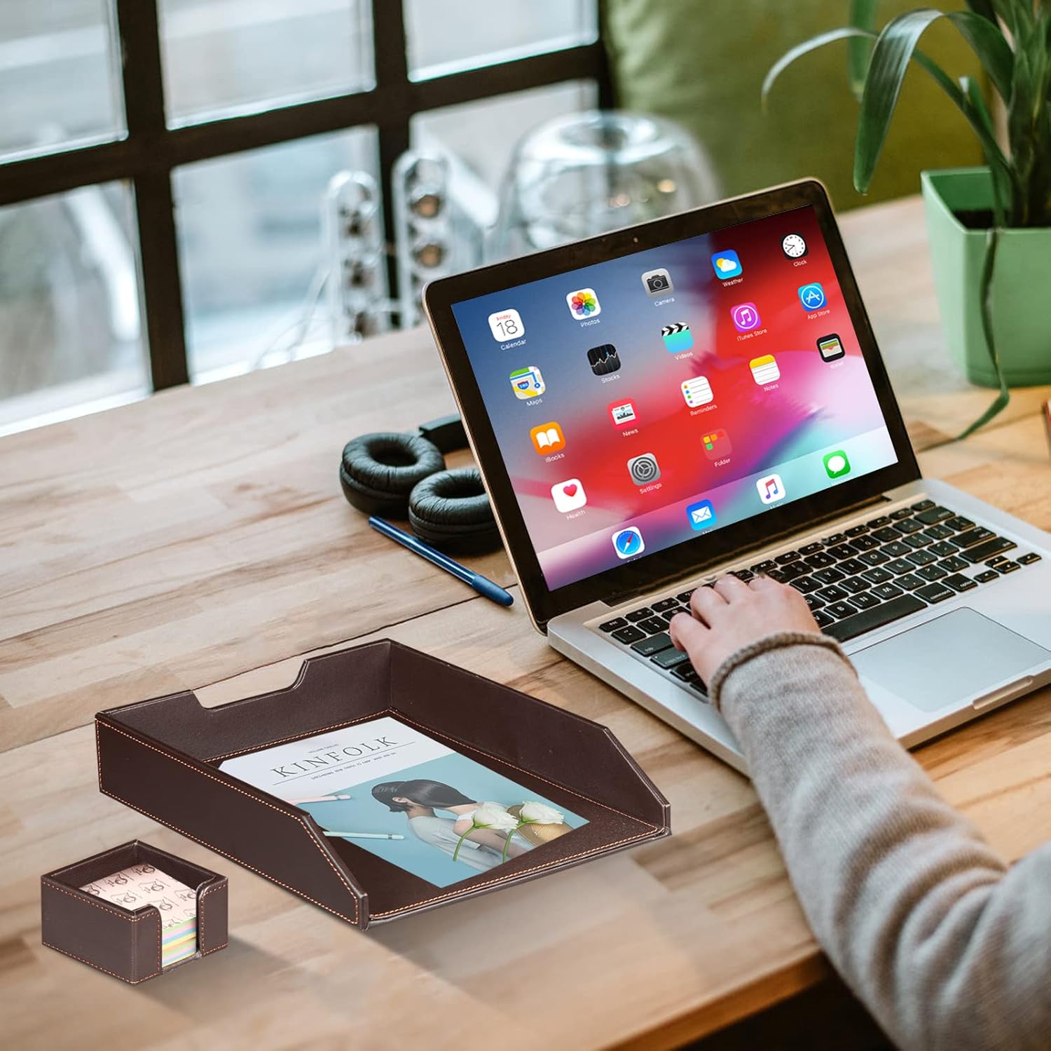 - / DESK ACCESSORIES SET OF 6 PIECES : Include 1*Magazine& Files Holder 1* Mails& Letter Sorter 1*Pens/Pencils Holder Cup 1*Sticky Note Container 1* Letter Paper Tray 1*Business Card Holder. Storing all office supplies in organized, accent your workspace and study room with this desk organizer set.