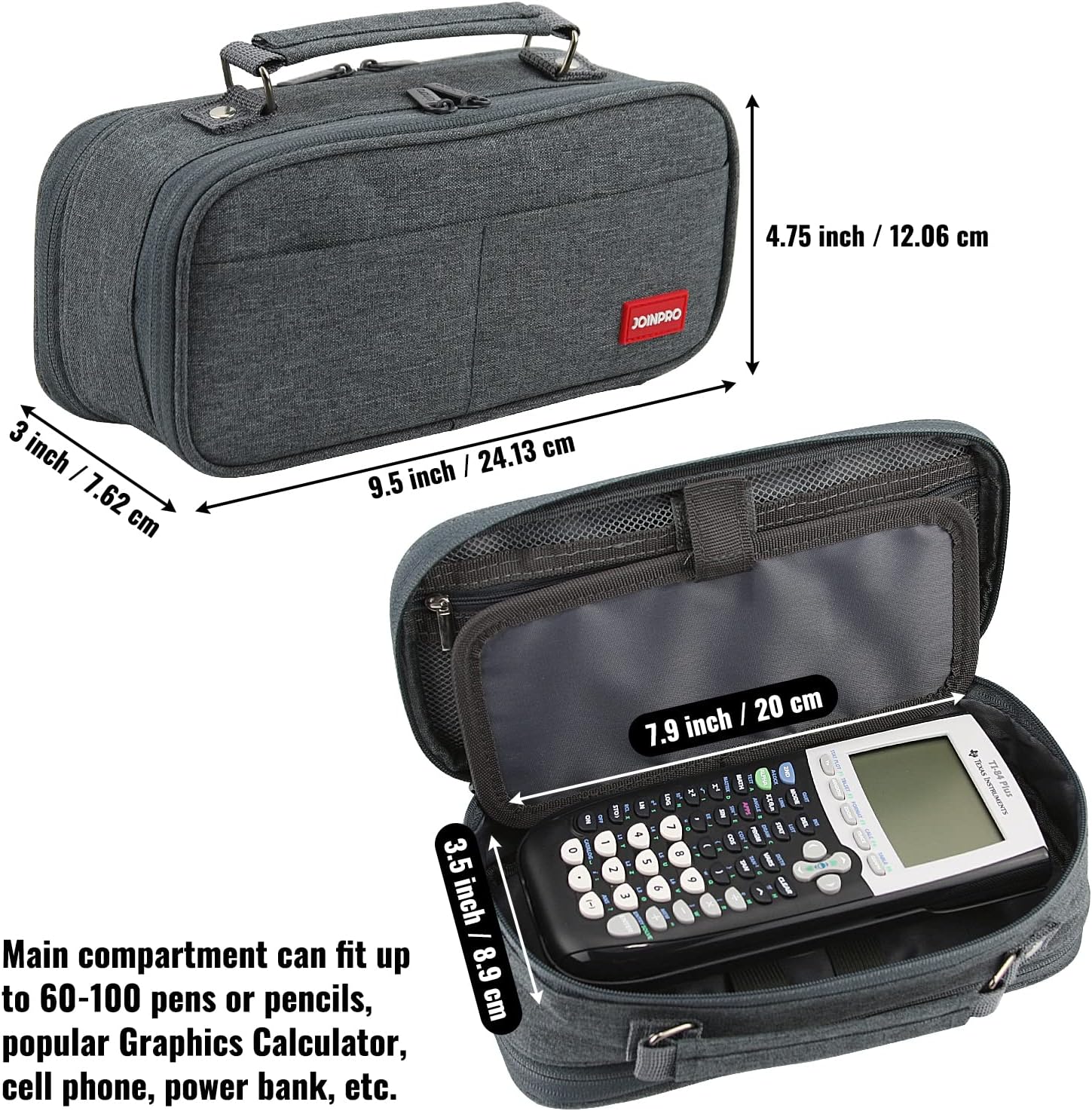 - Unique Designs - Fashionable colors and appearance, with three-dimensional and layered structure design. Two double-zipper, interior mesh pockets, and different compartments are designed for this pencil bag, it can hold pretty much everything a student needs. With rivet reinforcement handle strap design, not easy to break; and thickened handle strap for comfortable use and easy to carry.