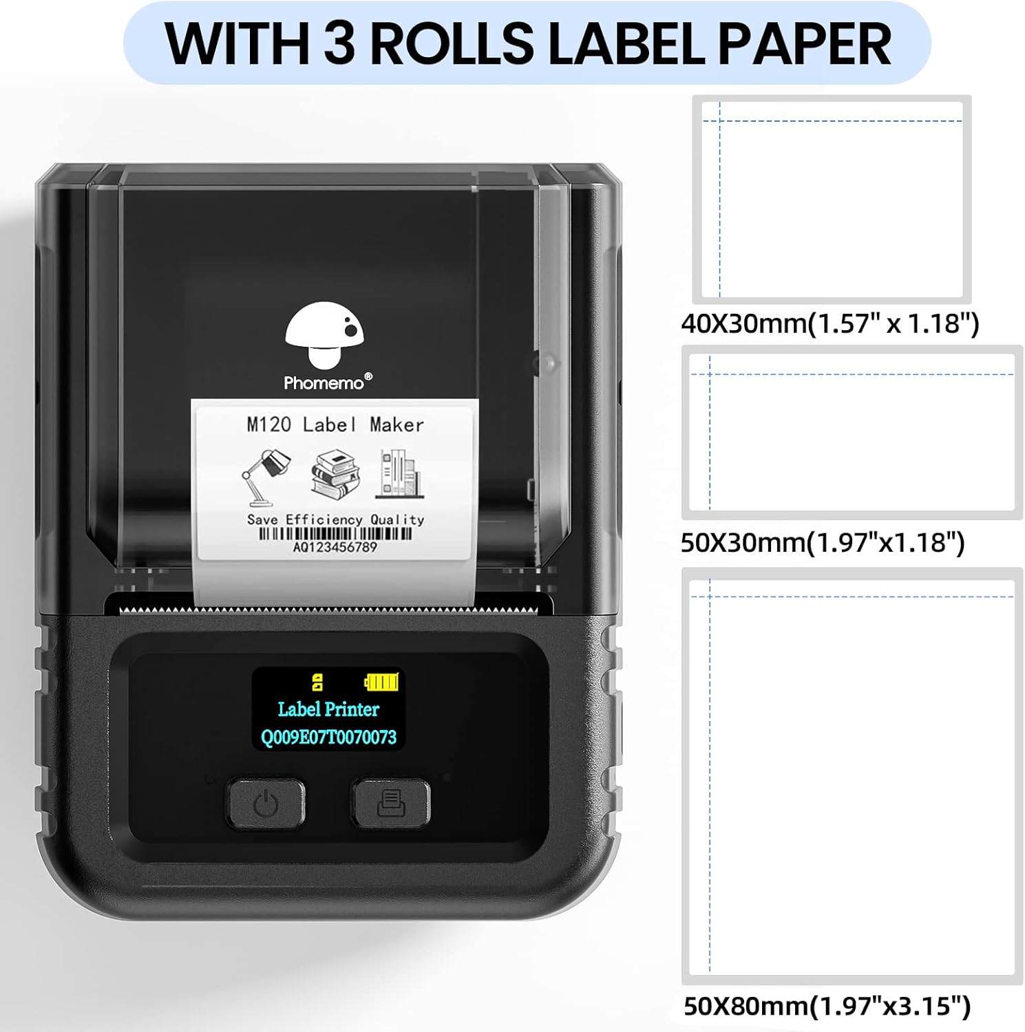 - ă3-Roll Label BundleăThe M120 Bluetooth label maker comes with a 3-roll thermal label set, offering sizes of 4030/5030/5080mm thermal labels(total 430 labels) With the included 3-roll label bundle and versatile printing capabilities, this Label Maker Machine helps streamline operations, save time, and reduce costs. This variety covers everything from small tags to larger labels, saving you the hassle and cost of purchasing additional supplies. Everything you need is included, making it a practical and cost-effective solution for all your labeling needs.
