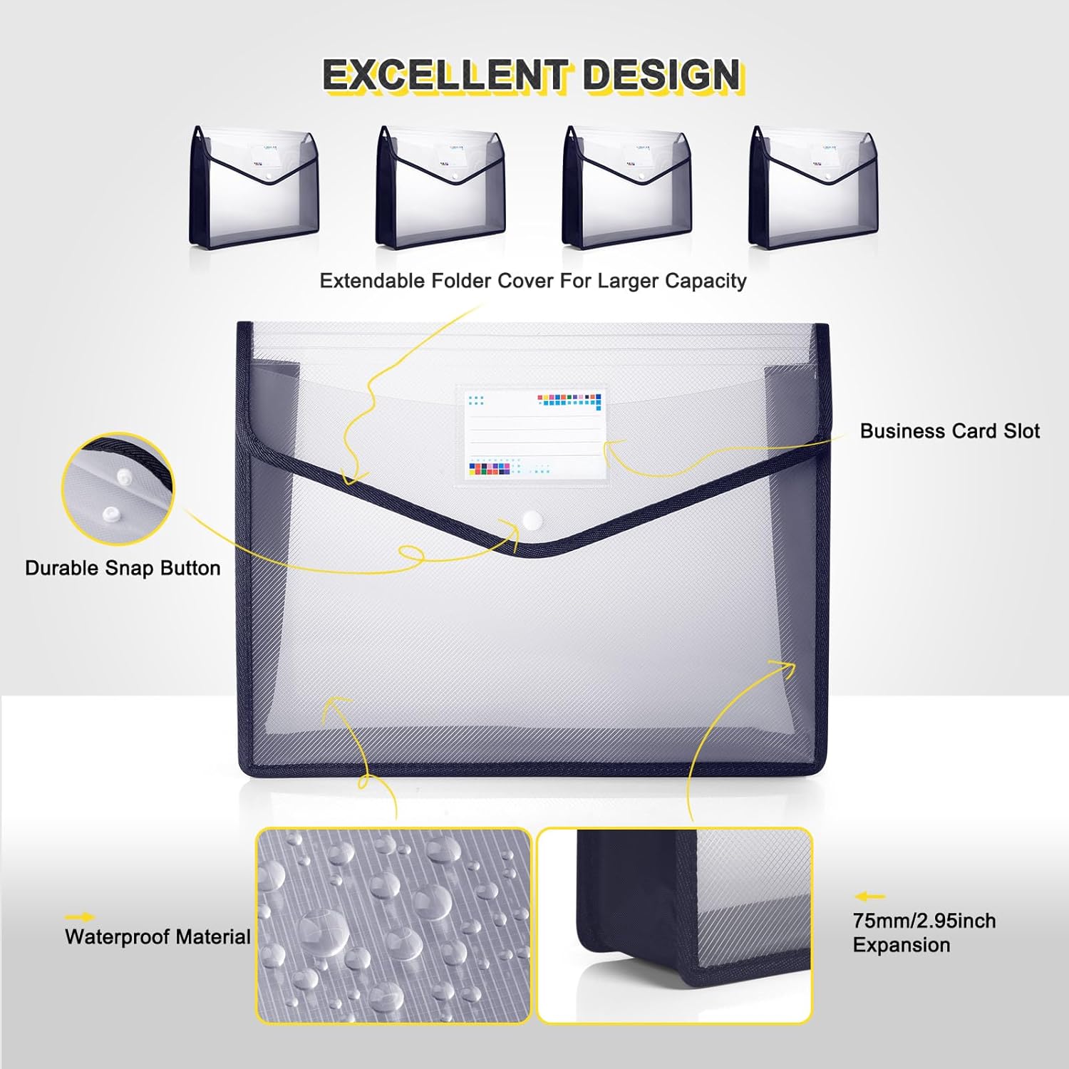- Excellent Performance: The file Organiser can be used for portfolios or conferences and is great for storing important documents on the desk, With its sleek and smart design, you will look professional, taking this to any business meeting or using it for work! This Plastic File Wallet is also the perfect choice for children to develop the habit of organizing files. Plastic Folders with great snap closure and identification labels, is safer and convenient keeper