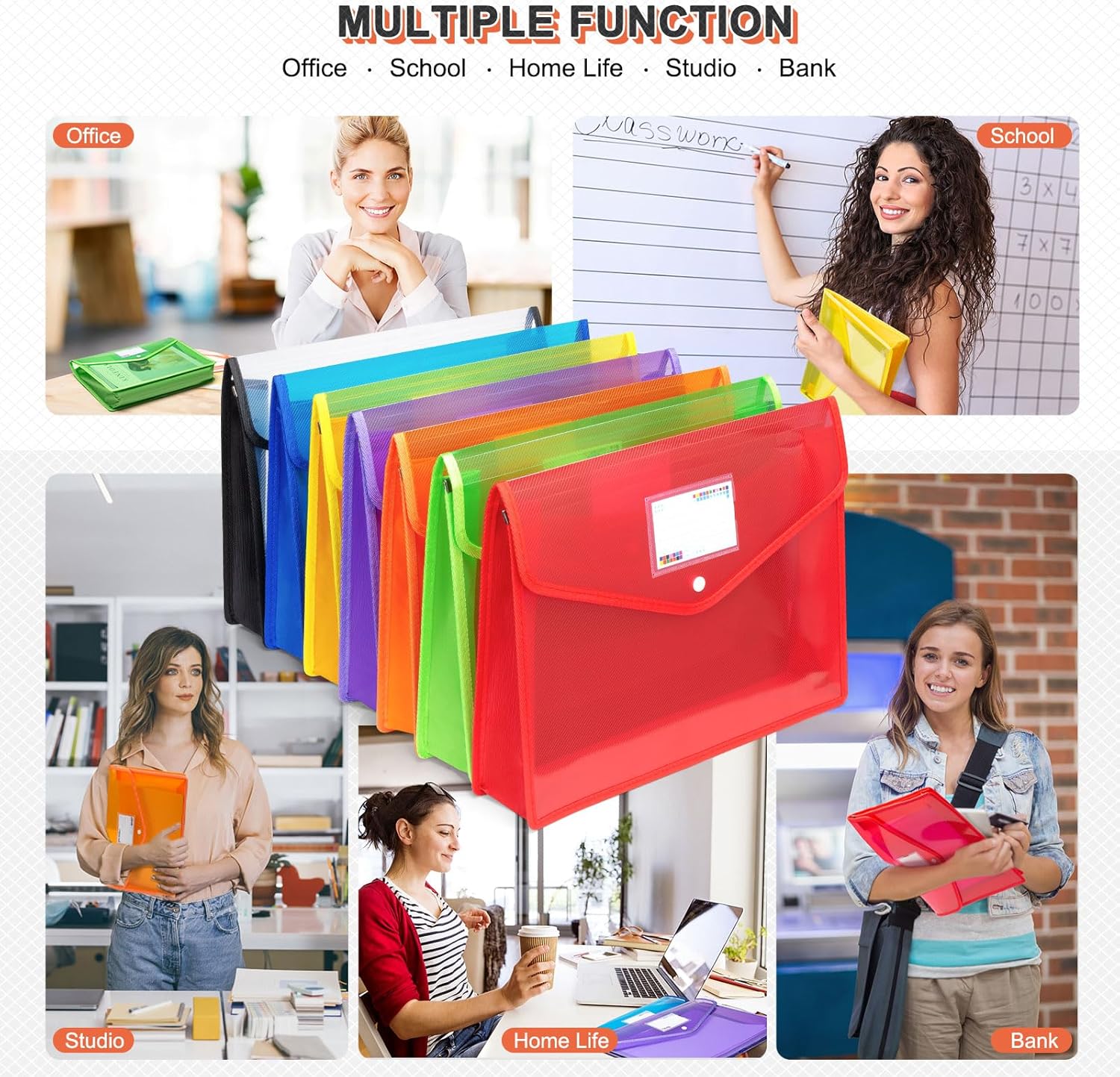 - Excellent Performance: The file Organiser can be used for portfolios or conferences and is great for storing important documents on the desk, With its sleek and smart design, you will look professional, taking this to any business meeting or using it for work! This Plastic File Wallet is also the perfect choice for children to develop the habit of organizing files. Plastic Folders with great snap closure and identification labels, is safer and convenient keeper