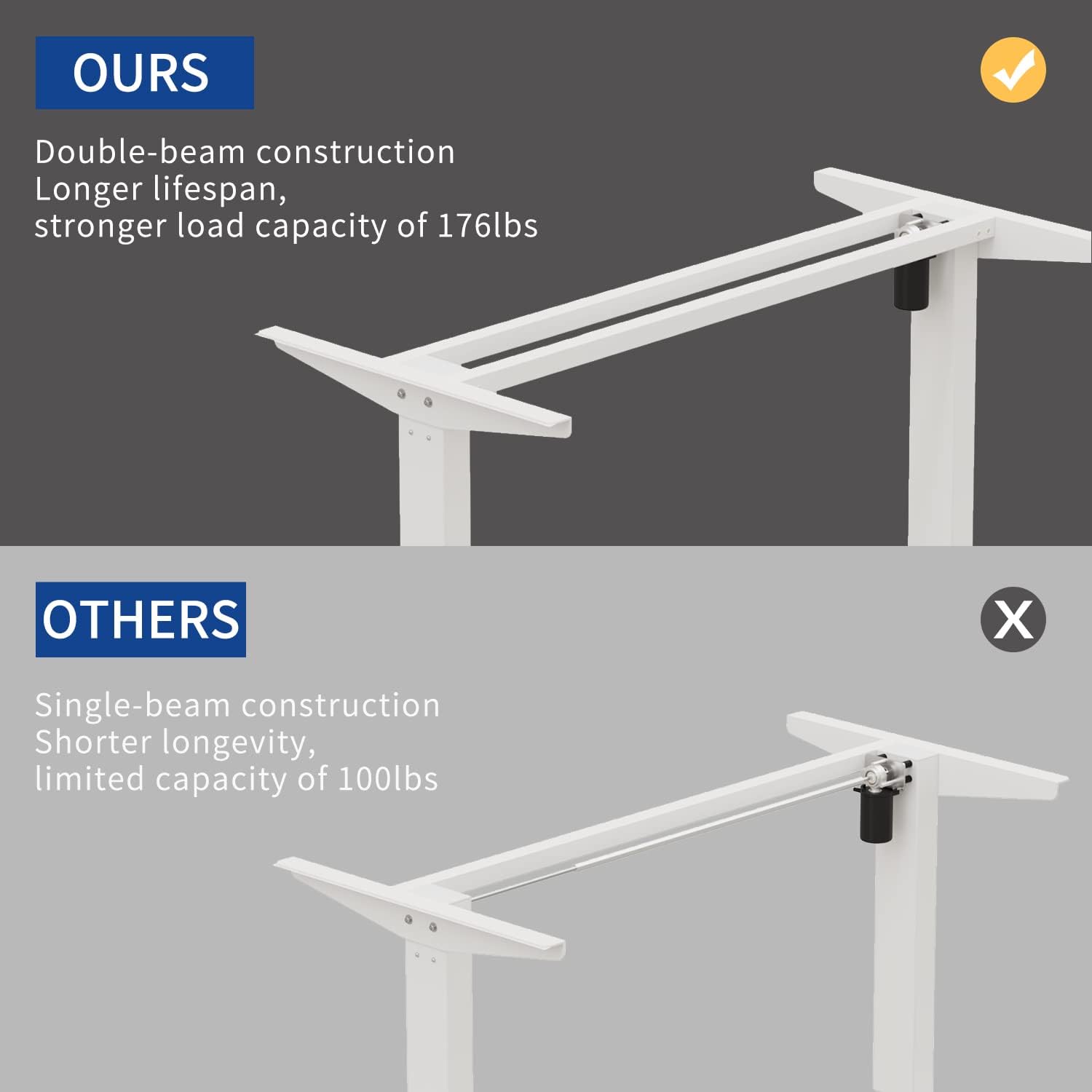 Electric Height Adjustable Standing Desk, 55 x 24 inches Sit - Stand Desk for Work or Home Office Push Button Memory Settings Oak+White Splice Board/White Frame