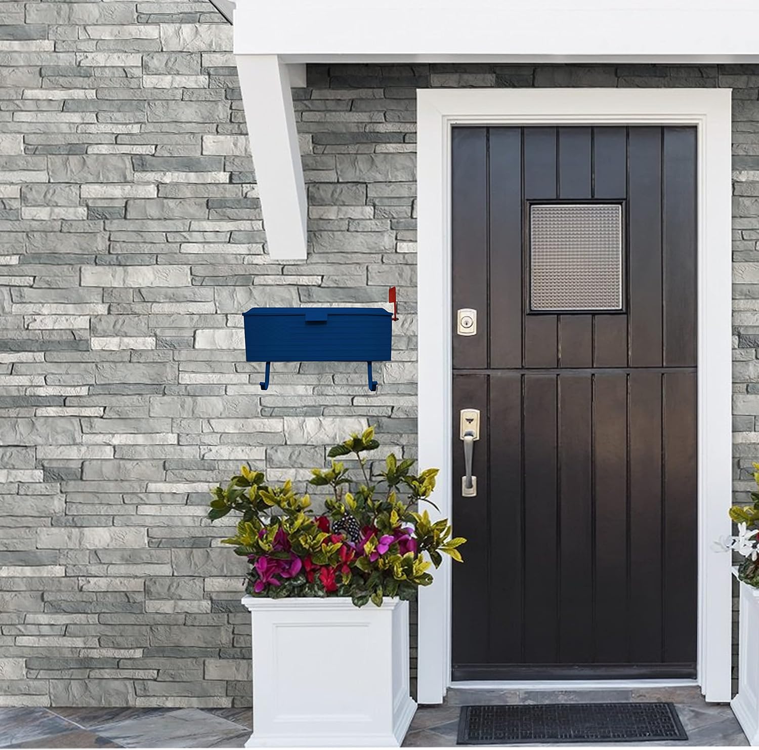 Oakland Living AZ620-BLUE Blue Patriotic Metal Outgoing Mail Flag and Newspaper Hangers Wall Mounted Mailbox
