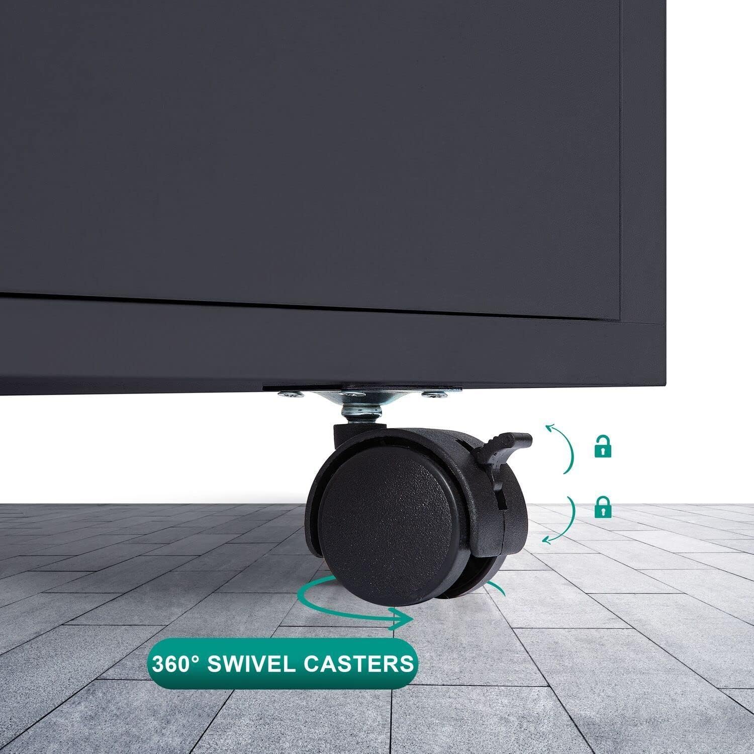 Naomi Home 7 Drawer Office File Cabinet, Storage File cabinets for Home Office, Office Organization Filing Cabinet with Wheels, Printer Stand with Storage, 180 lbs Capacity – Black