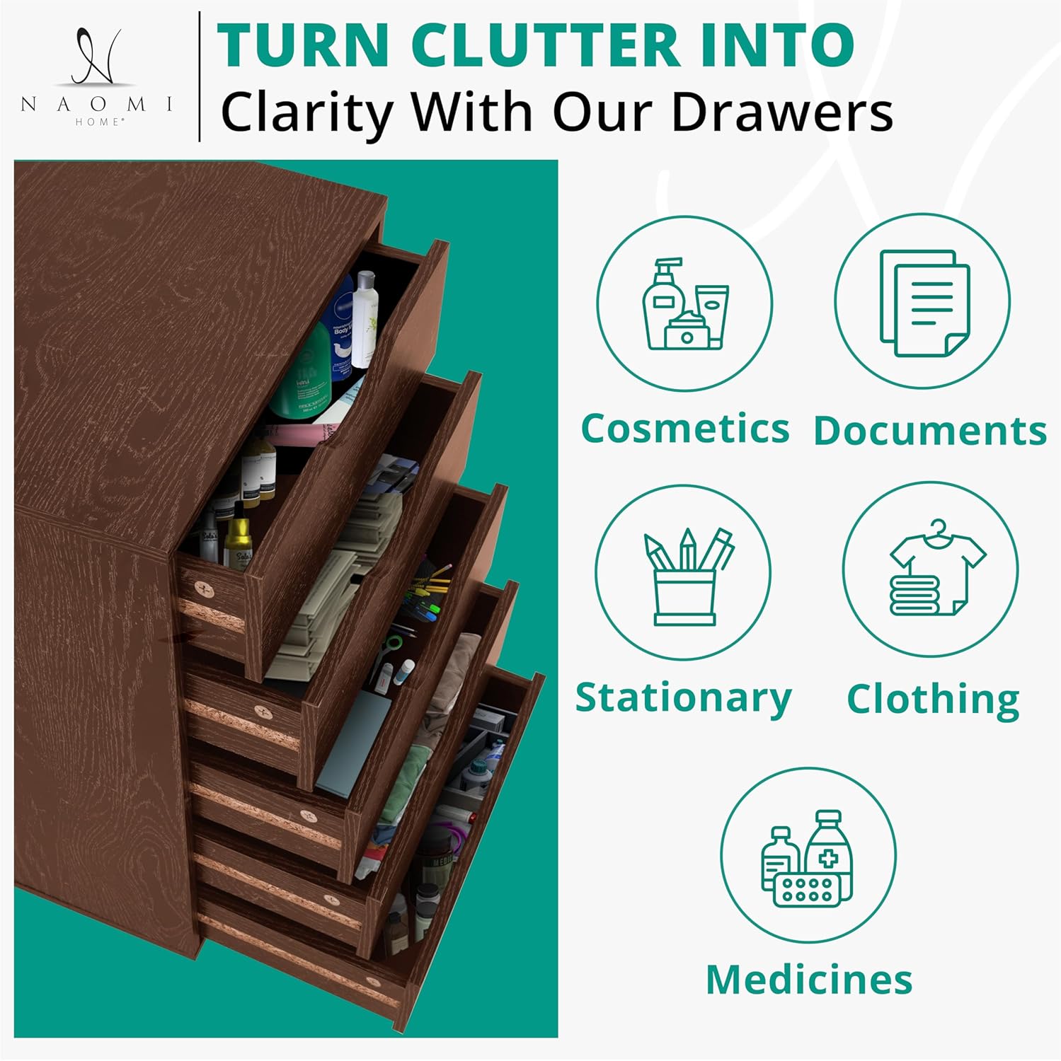 - HEAVY DUTY & EASY TO ASSEMBLE This solid Dresser Drawer Unit with evenly distributed maximum weight capacity. Included Step by Step instrucitons making the Drawer Cabinet easy to assemble. In the unlikely even that you are not satisfied with our Drawer Chest you can reach out to our customer support for refunds/replacements.