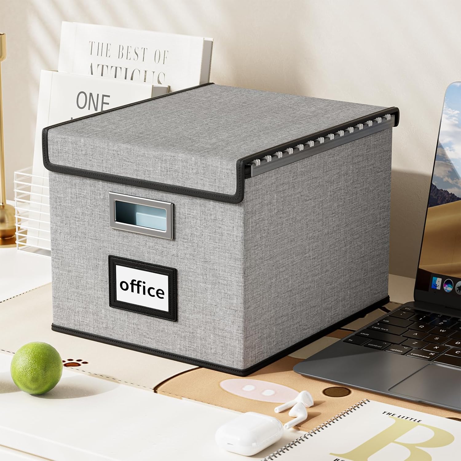 - Collapsible Multifunctional Filing Storage Organizer - The outer box with linen fabric can be dustproof, inside and the bottom support is made of thickened cardboard, which is environmentally friendly and not easily deformed. The cover with Velcro not only allows us to cover the file box easily, but provides more storage space for the file. It also acts as a small filing cabinet for tax documents, legal files and other documents storage. When we are not using it, we can fold it up to save space.