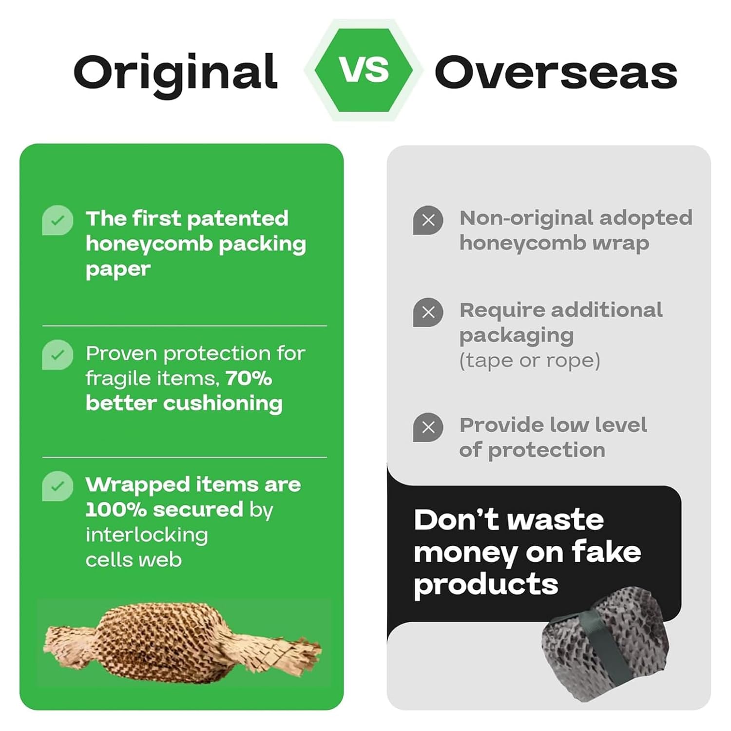 - 【ECO-CONSCIOUS ALTERNATIVE TO ALL PLASTIC PACKAGING WRAPS】For the longest time, you’ve had to use bubble wrap, air pillows, or peanuts to protect your valuables during shipping. Now we present the revolutionary HexcelWrap packaging, a great and sustainable alternative to all plastic packaging wraps
