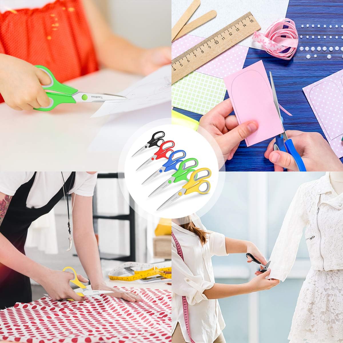 - Comfortable Use: Soft-grip handles for comfortable use, can be used left- or right-handed.Adjustable stainless-steel blade pivot for strength and smooth opening and closing.Work perfectly,and are comfortable in your hand. Can be used as scissors for office, scissors for school, scissors for home, 8 scissors, scissors bulkCraft scissors, fabric Scissors, heavy duty scissors, scissors pack, Left scissors, sharp scissors, sewing scissors, cutting patterns, alterations, hand craft.