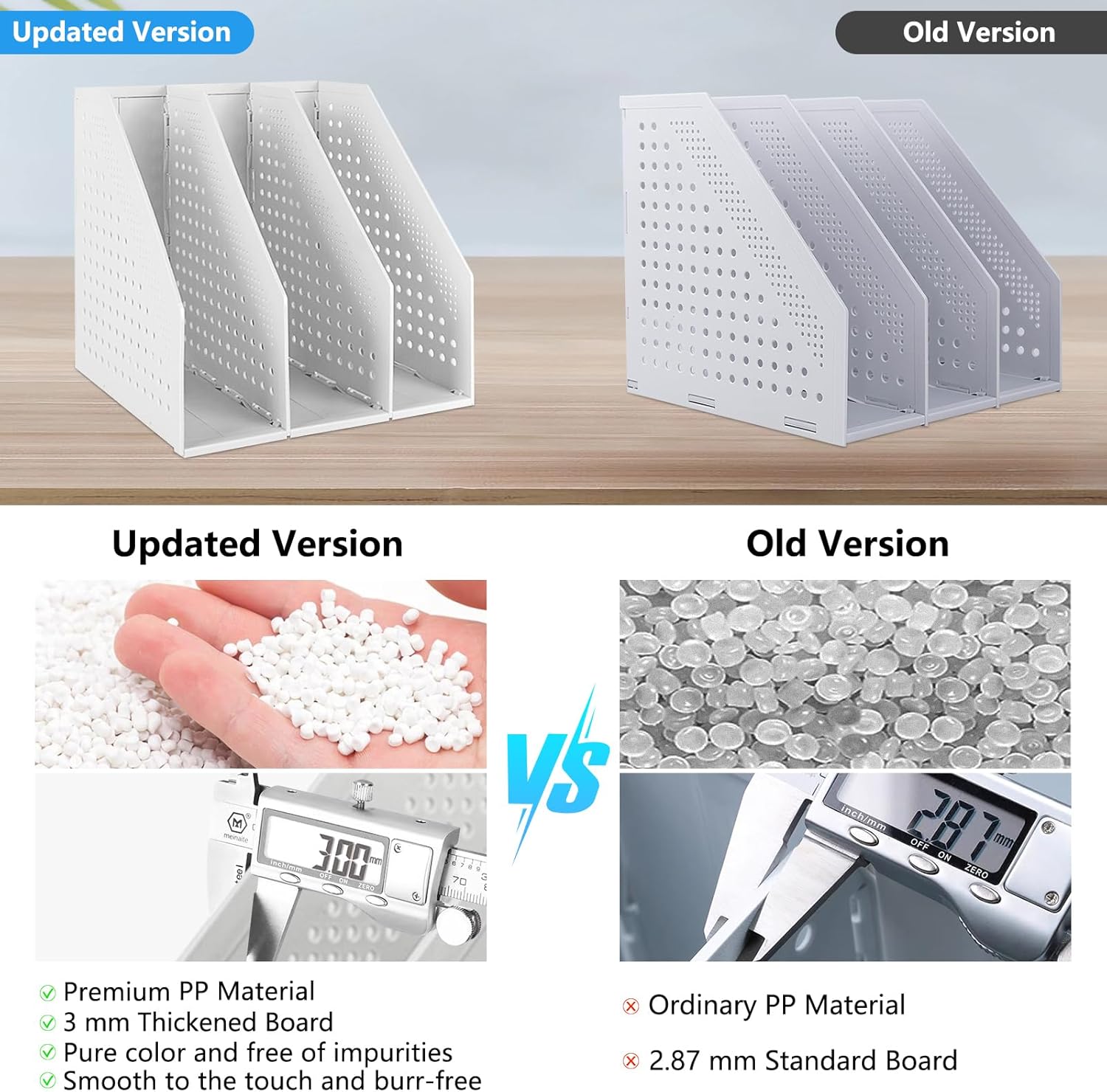 - STURDY AND STABLE STRUCTURE: SAYEEC magazine file holder is made of thick and durable pp material, flat surface, not easy deformed and break easily in a long time. Each slot is 3 inches. Thickness of board: 3mm, heavy-duty and long service life.
