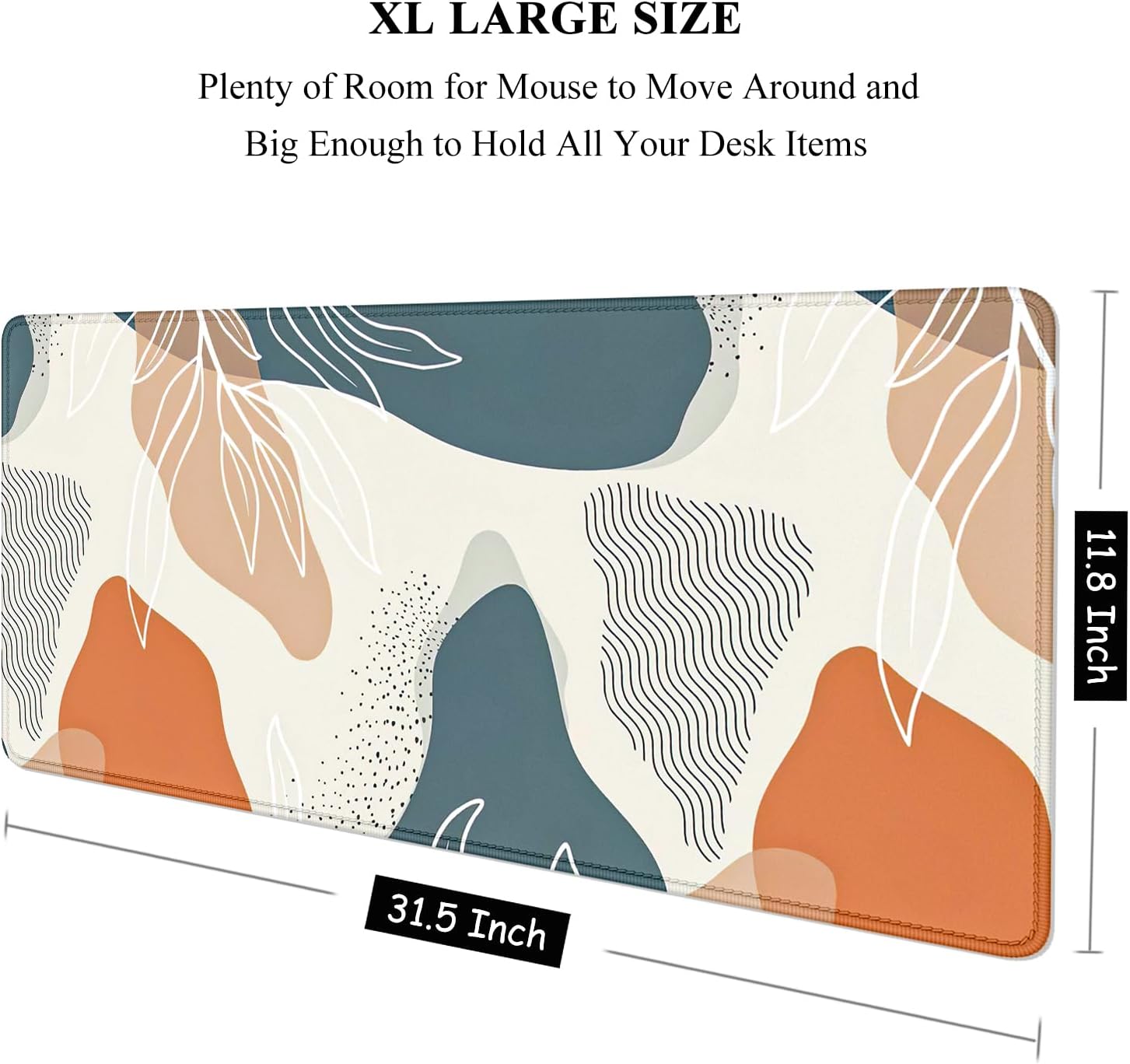 Auhoahsil Large Mouse Pad, XXL Gaming Mousepad, Desk Mat for Desktop, Thick Rubber, Big & Long Size, Stitched Edges, Full Desk Pad for Laptop & Computer, Extended 31.5 x 11.8 in, Abstract Art Leaves