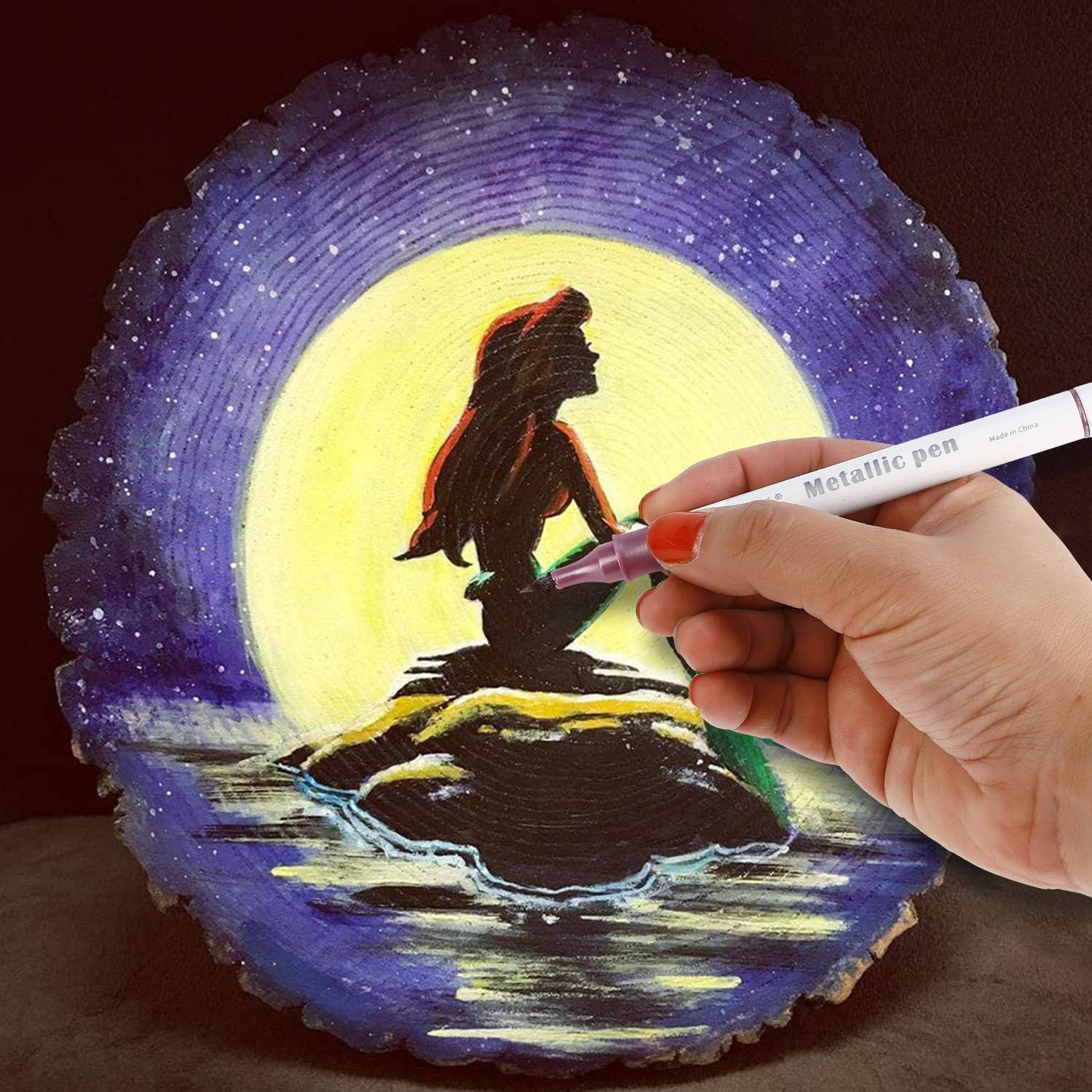 GC QUILL 12 Colors Metallic Marker Pens - Dual Tip Brush and Fine Point Pens for DIY Album, Black Cards, Scrapbooking, Craft Supplies, on Ceramic, Stone, Glass, Fabric GC-MP12